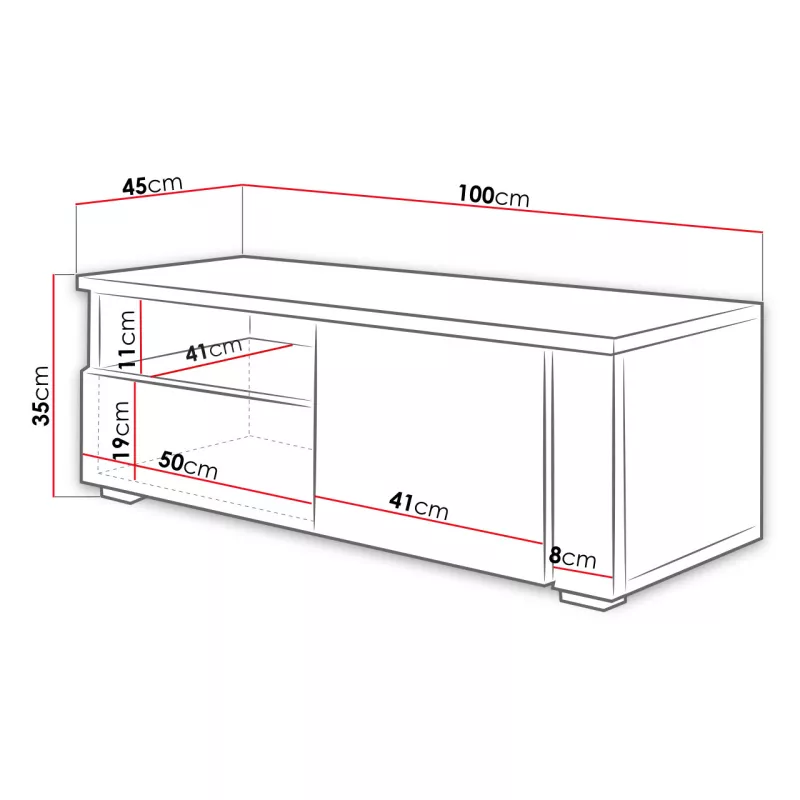 Stolek pod televizi KIERA 1P - šířka 100 cm, bílý