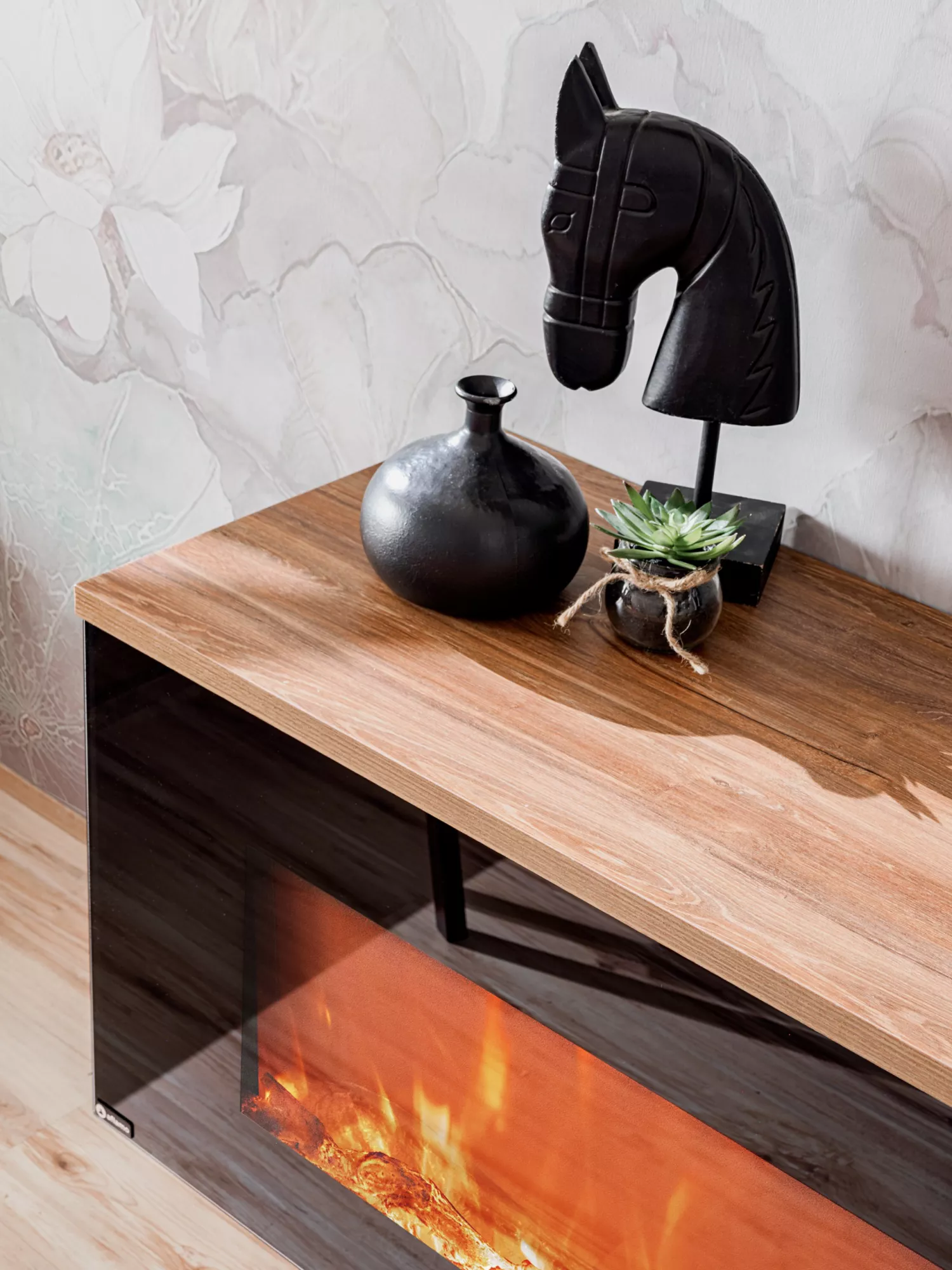 TV stolek s elektrickým krbem AGRIE vás zaujme svým originálním designem. ABS hrany chrání LTD před mechanickým poškozením a vlhkostí. Součástí jsou skříňky s vyklápěcími dvířky, které poskytují dostatečný úložný prostor.