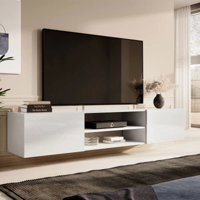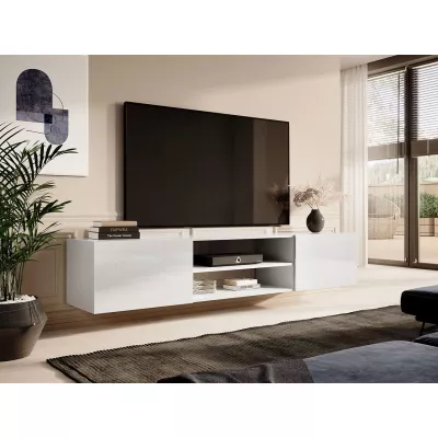 Závěsný TV stolek TOKA - bílý / lesklý bílý
