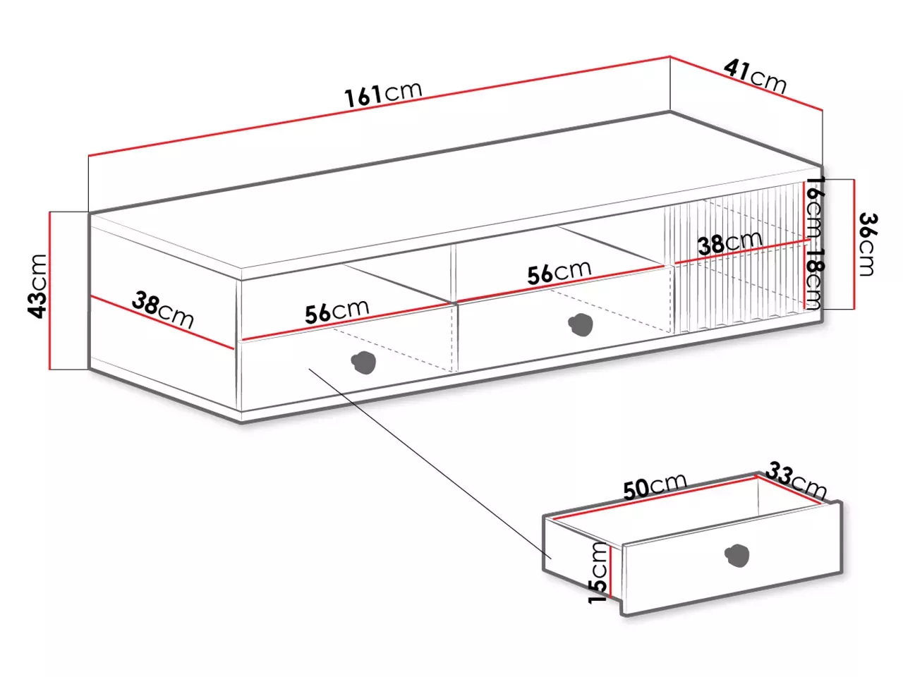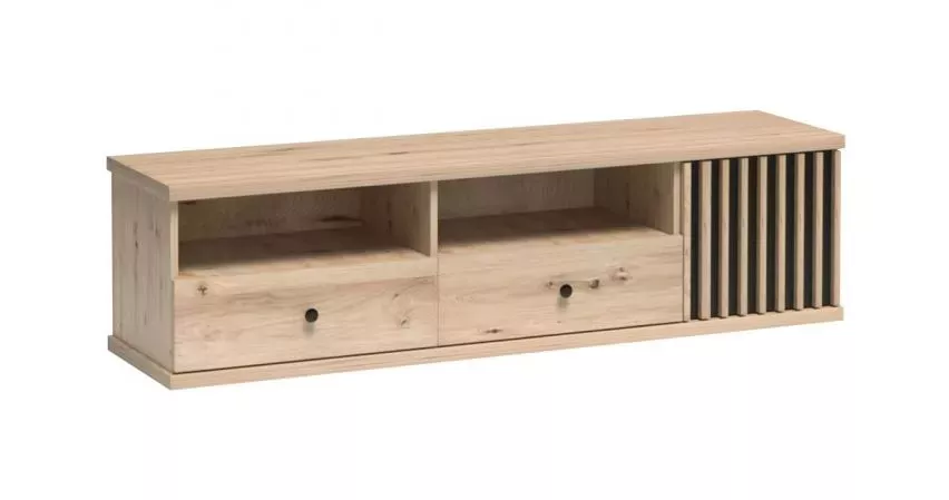 Televizní stolek AIMY najde své využití v každém moderním i designovém interiéru. Otevírací úchytka skříňky je důmyslně ukryta, protože je součástí ozdobných lamel na její přední straně. Kulové panty použité v zásuvkách zajišťují vysoký komfort používání.