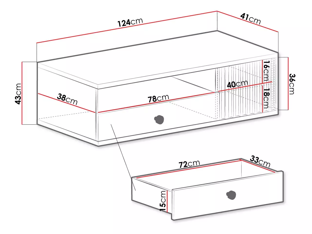 Z hlediska funkčnosti poskytuje stolek dostatek prostoru pro potřebné televizní příslušenství. Otevřené police, zavřená skříňka a zásuvka jsou dokonalým místem pro set-top box, hry, desky a sluchátka.