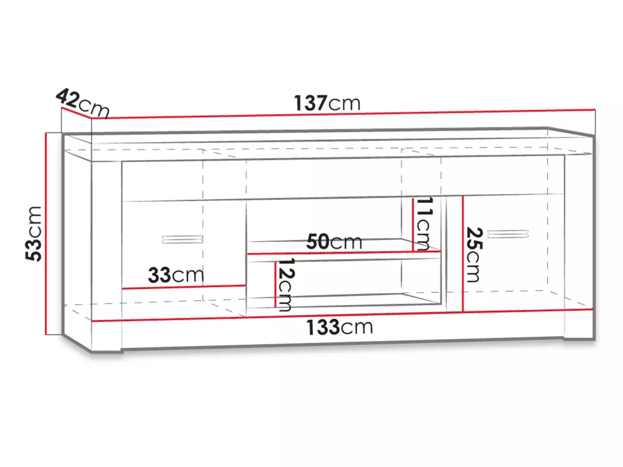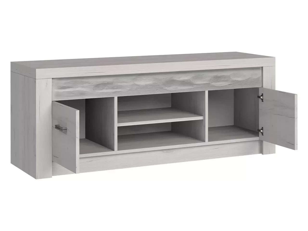 Televizní stolek BESS je kus nábytku, který se vyznačuje nadčasovou jednoduchostí. Barvy imitující přírodní dřevo dokonale kontrastují s jednoduchou geometrickou formou a vytvářejí harmonický duet s širokými možnostmi uspořádání. Stolek je vyroben z DTD s povrchovou úpravou z dýhy PVC a vložkou z přírodního kartáčovaného dřeva. Z hlediska funkčnosti poskytuje stolek dostatek prostoru pro potřebné televizní příslušenství. Otevřené police a skříňky jsou dokonalým místem pro set-top box, hry, desky a sluchátka.