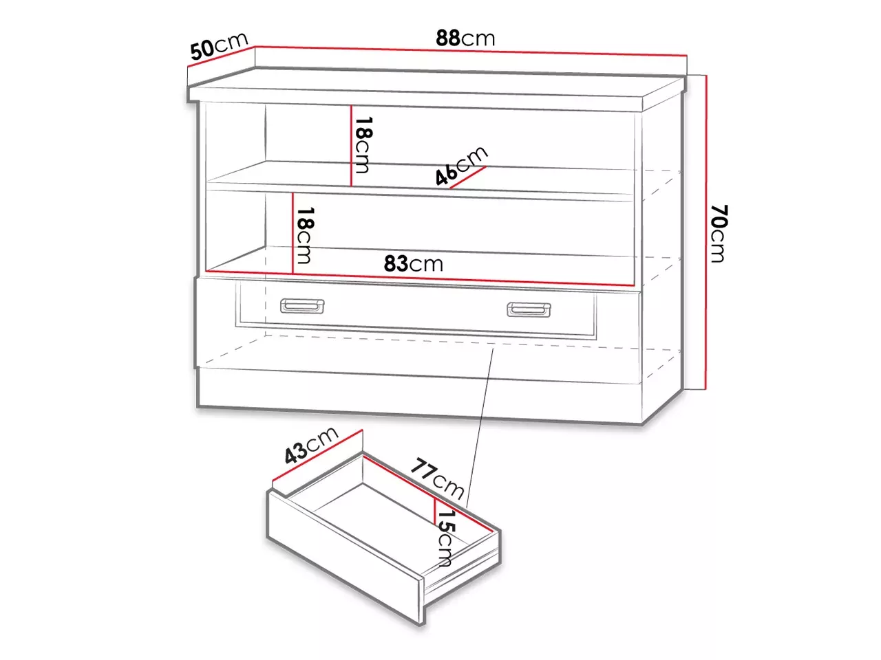 TV stolek GIADA je kus nábytku, který se vyznačuje nadčasovou jednoduchostí. Je dostupný v zajímavé barevné kombinaci, která dokonale zapadá do uspořádání klasických interiérů. Velkou výhodou tohoto modelu může být jeho šířka 88 cm, proto je ideální i do malých obýváků. Z hlediska funkčnosti poskytuje stolek dostatek prostoru pro potřebné televizní příslušenství. Otevřené police a zásuvka jsou dokonalým místem pro set-top box, hry, desky a sluchátka.