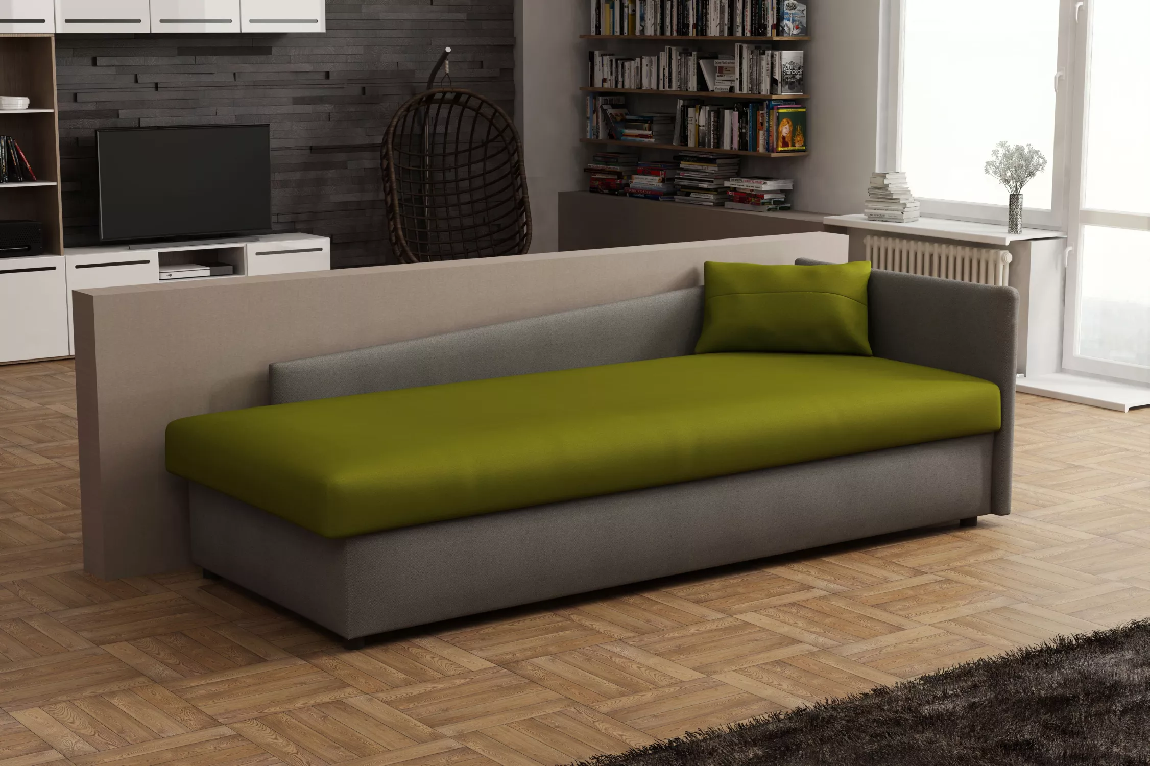Válenda 80x200 RUOXI s úložným prostorem - šedá / zelená