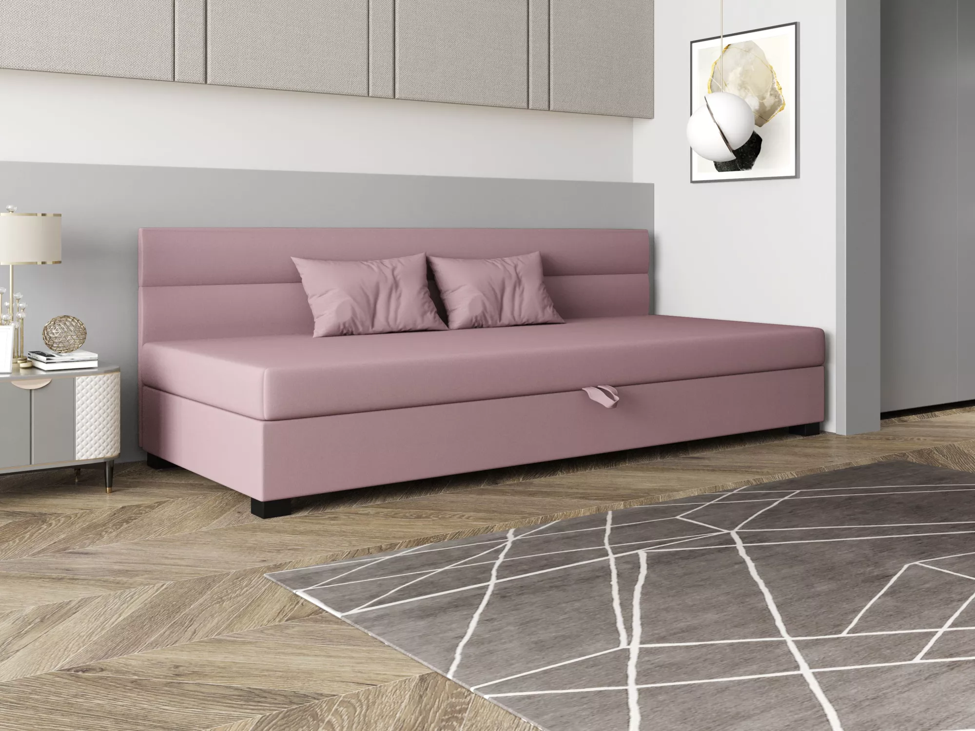 Jednolůžková čalouněná postel 90x195 NALINDA BIZ 1 disponuje prostorným úložným prostorem pro uložení ložního prádla nebo sezónního oblečení. Vysoké čalouněné čelo zpříjemní každou chvílí odpočinku a zabrání poškrábání a zašpinění zdi.