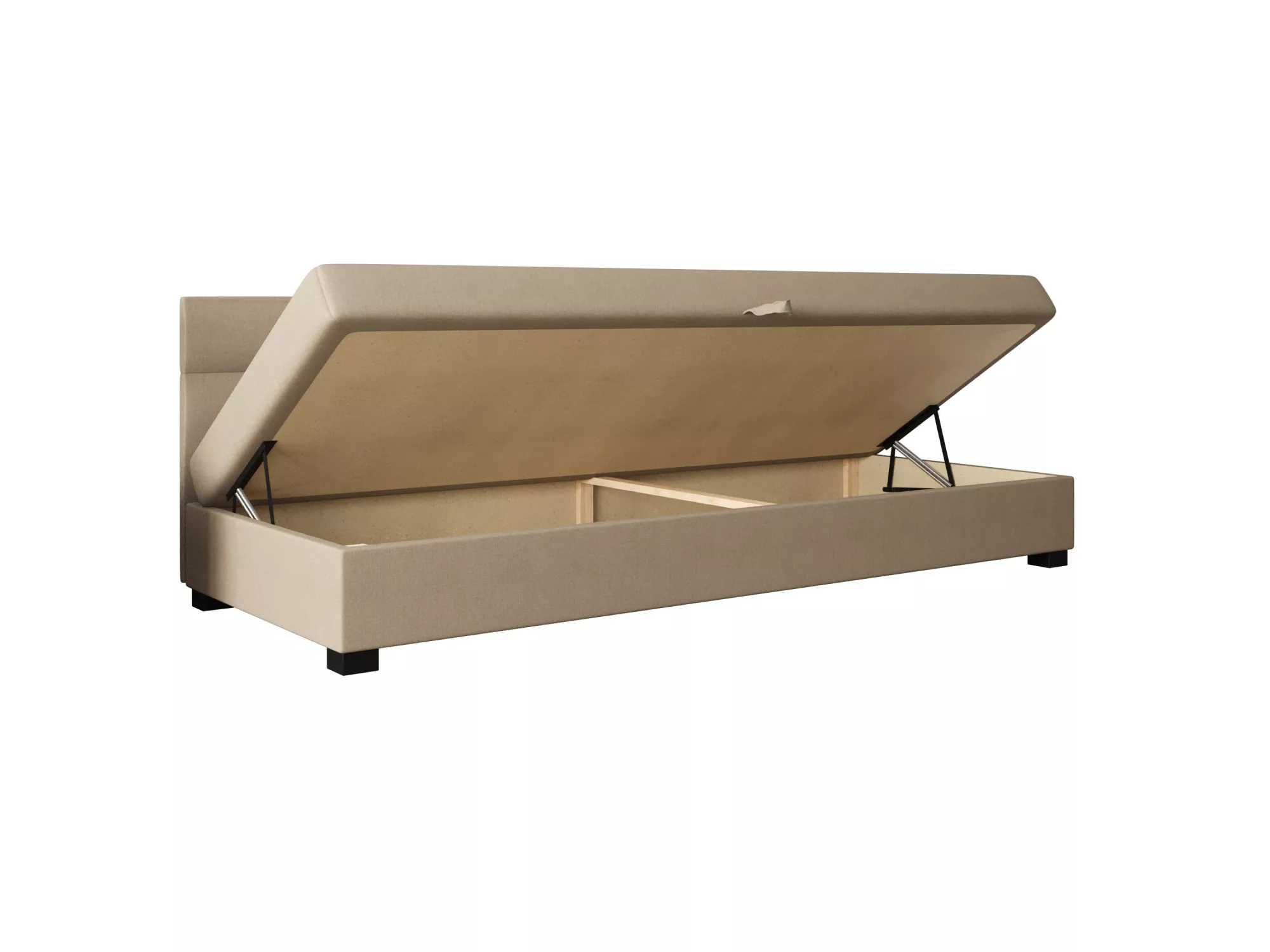 Jednolůžková čalouněná postel 90x195 NALINDA BIZ 1 disponuje prostorným úložným prostorem pro uložení ložního prádla nebo sezónního oblečení. Vysoké čalouněné čelo zpříjemní každou chvílí odpočinku a zabrání poškrábání a zašpinění zdi.