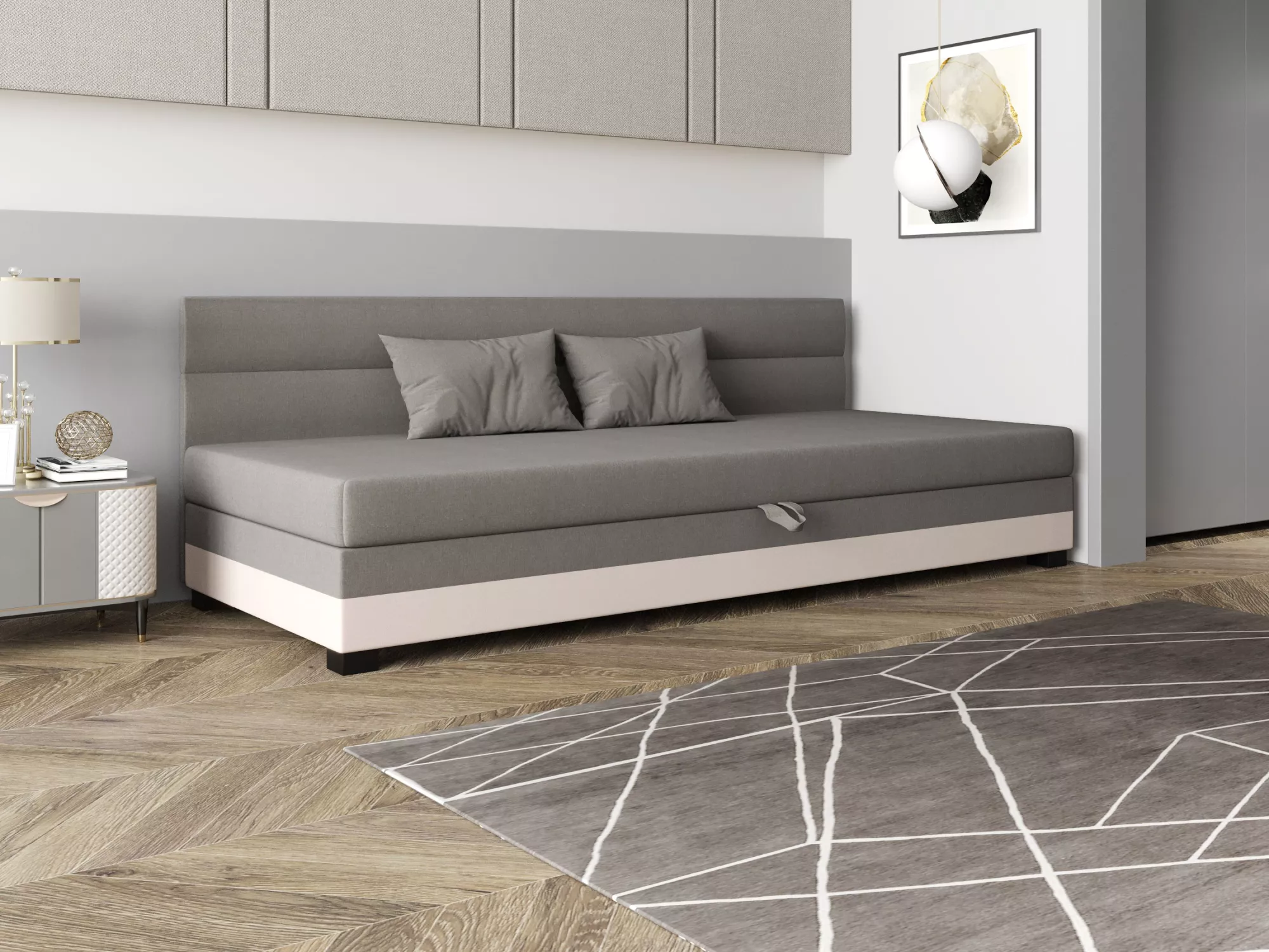 Jednolůžková čalouněná postel 80x195 NALINDA BIZ 2 disponuje prostorným úložným prostorem pro uložení ložního prádla nebo sezónního oblečení. Vysoké čalouněné čelo zpříjemní každou chvílí odpočinku a zabrání poškrábání a zašpinění zdi.