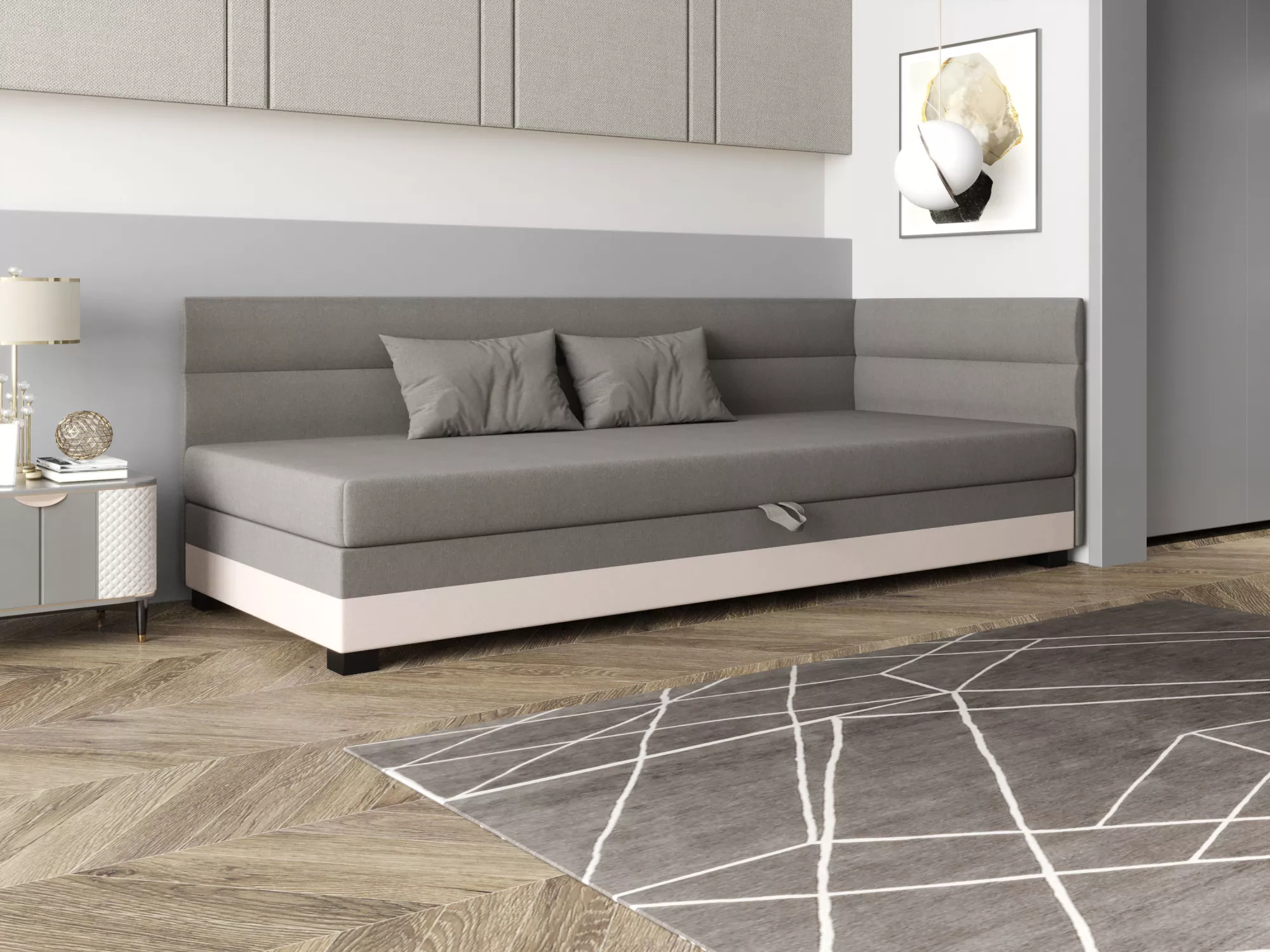 Jednolůžková čalouněná postel 100x195 NALINDA PLUS 2 disponuje prostorným úložným prostorem pro uložení ložního prádla nebo sezónního oblečení. Vysoké čalouněné čelo zpříjemní každou chvílí odpočinku a zabrání poškrábání a zašpinění zdi.