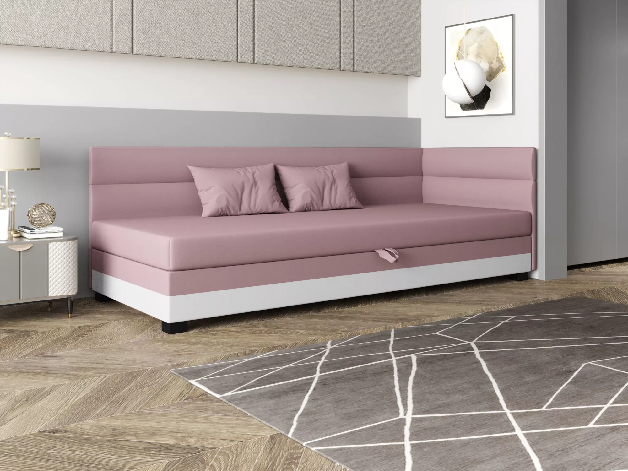 Jednolůžková čalouněná postel 110x195 NALINDA PLUS 2 - růžová / bílá
