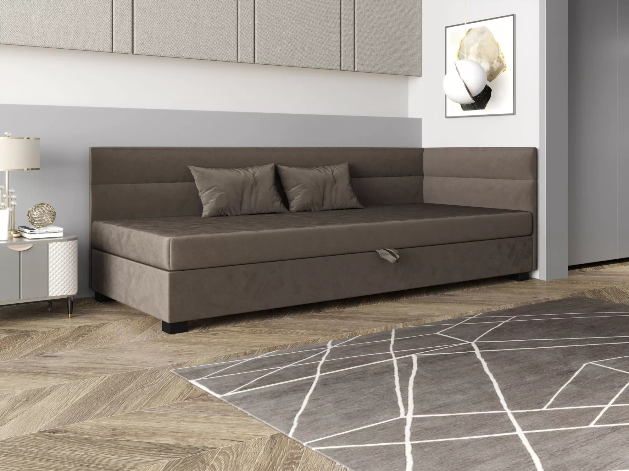 Jednolůžková čalouněná postel 110x195 NALINDA PLUS 2 disponuje prostorným úložným prostorem pro uložení ložního prádla nebo sezónního oblečení. Vysoké čalouněné čelo zpříjemní každou chvílí odpočinku a zabrání poškrábání a zašpinění zdi.