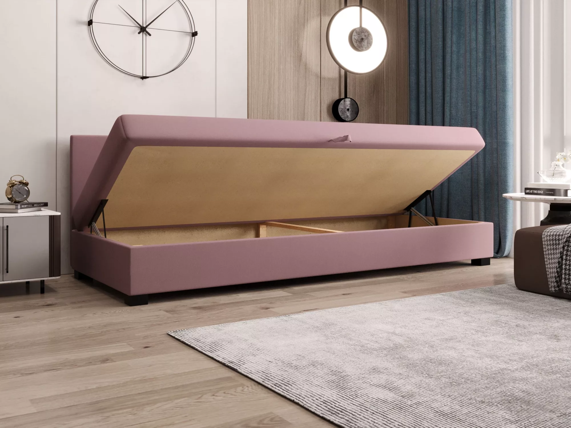 Součástí postele je zabudovaná matrace a úložný prostor.