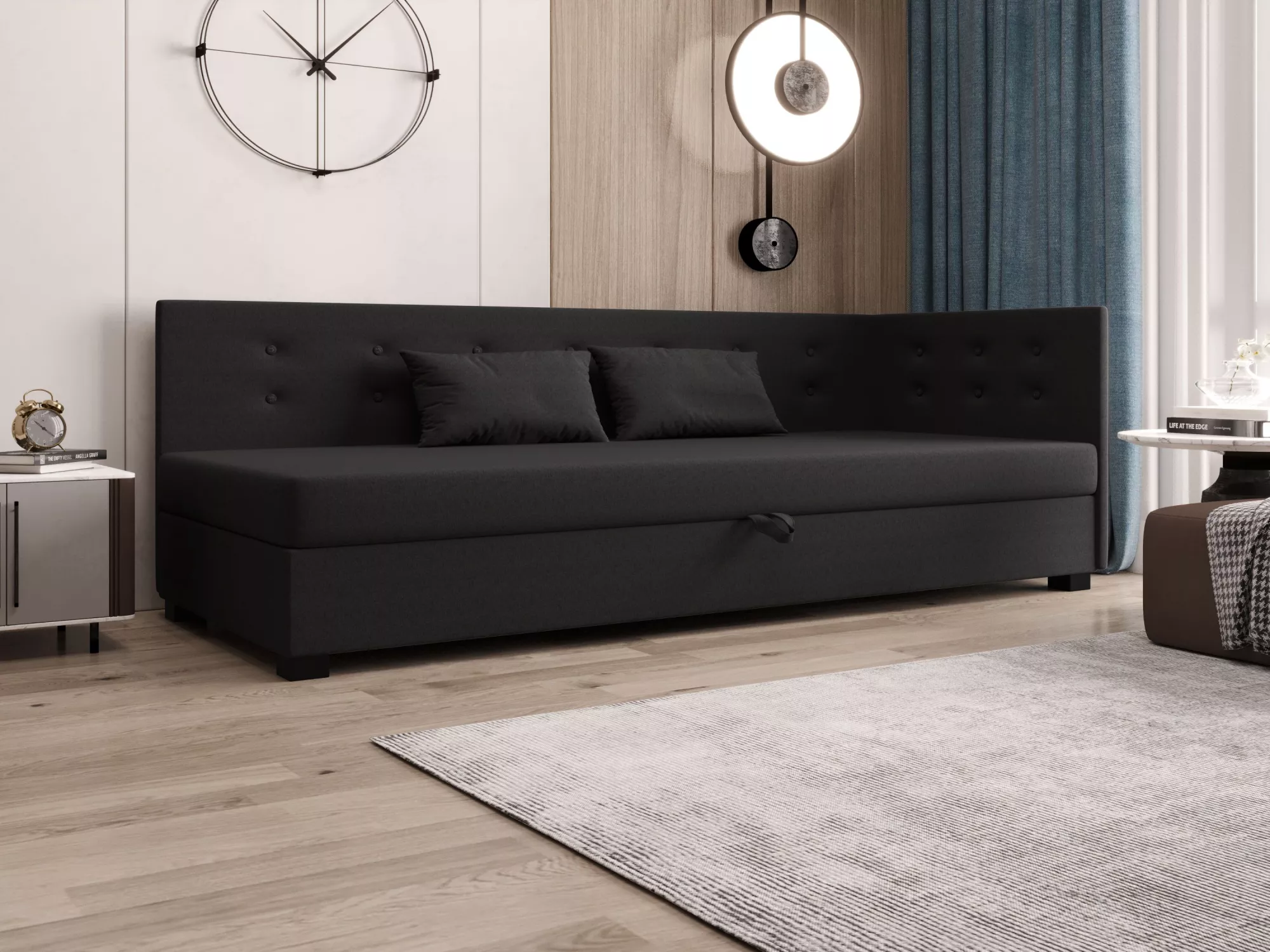 Jednolůžková postel 80x195 AJKA PLUS 1 na první pohled zaujme svým vysokým prošívaným čelem, které zabraňuje poškrábání a zašpinění zdi. Postel skvěle zapadne do každého studentského pokoje. Nechybí ani praktický úložný prostor pro uložení lůžkovin nebo sezónního oblečení.