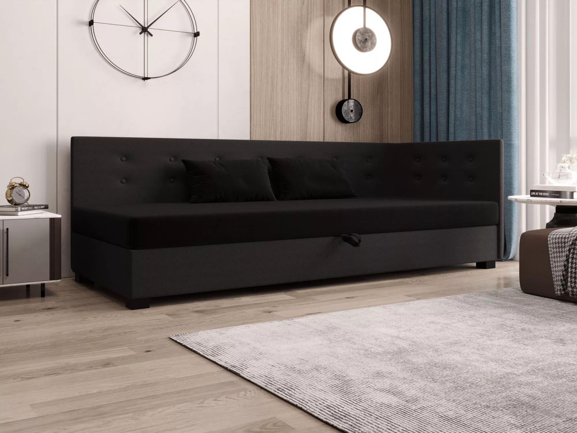 Součástí postele je zabudovaná matrace a úložný prostor.