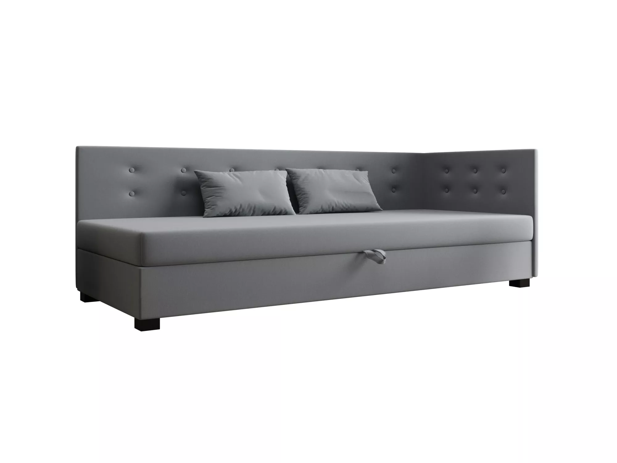 Jednolůžková postel 100x195 AJKA PLUS 1 na první pohled zaujme svým vysokým prošívaným čelem, které zabraňuje poškrábání a zašpinění zdi. Postel skvěle zapadne do každého studentského pokoje. Nechybí ani praktický úložný prostor pro uložení lůžkovin nebo sezónního oblečení.