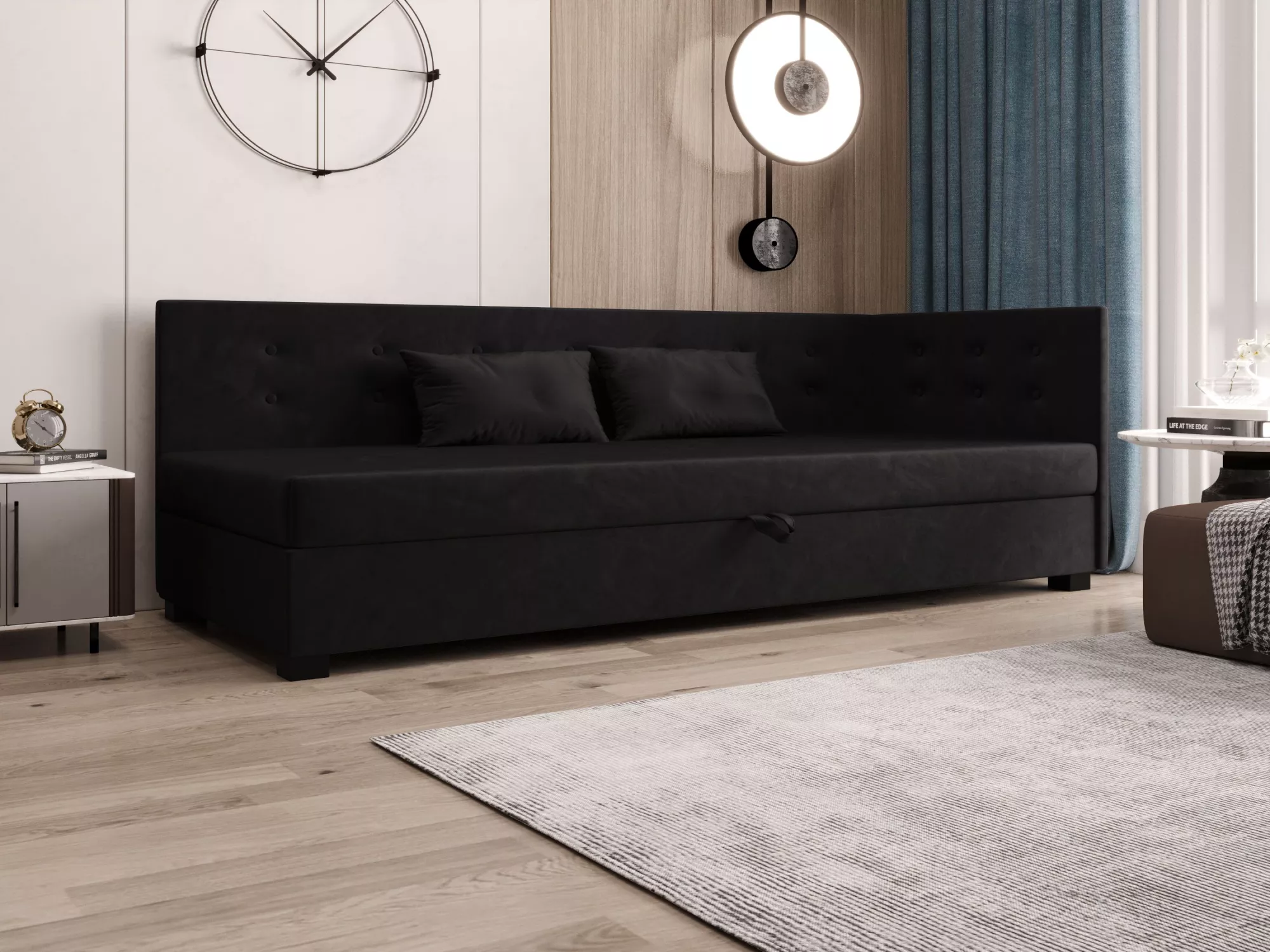 Jednolůžková postel 110x195 AJKA PLUS 2 na první pohled zaujme svým vysokým prošívaným čelem, které zabraňuje poškrábání a zašpinění zdi. Postel skvěle zapadne do každého studentského pokoje. Nechybí ani praktický úložný prostor pro uložení lůžkovin nebo sezónního oblečení.