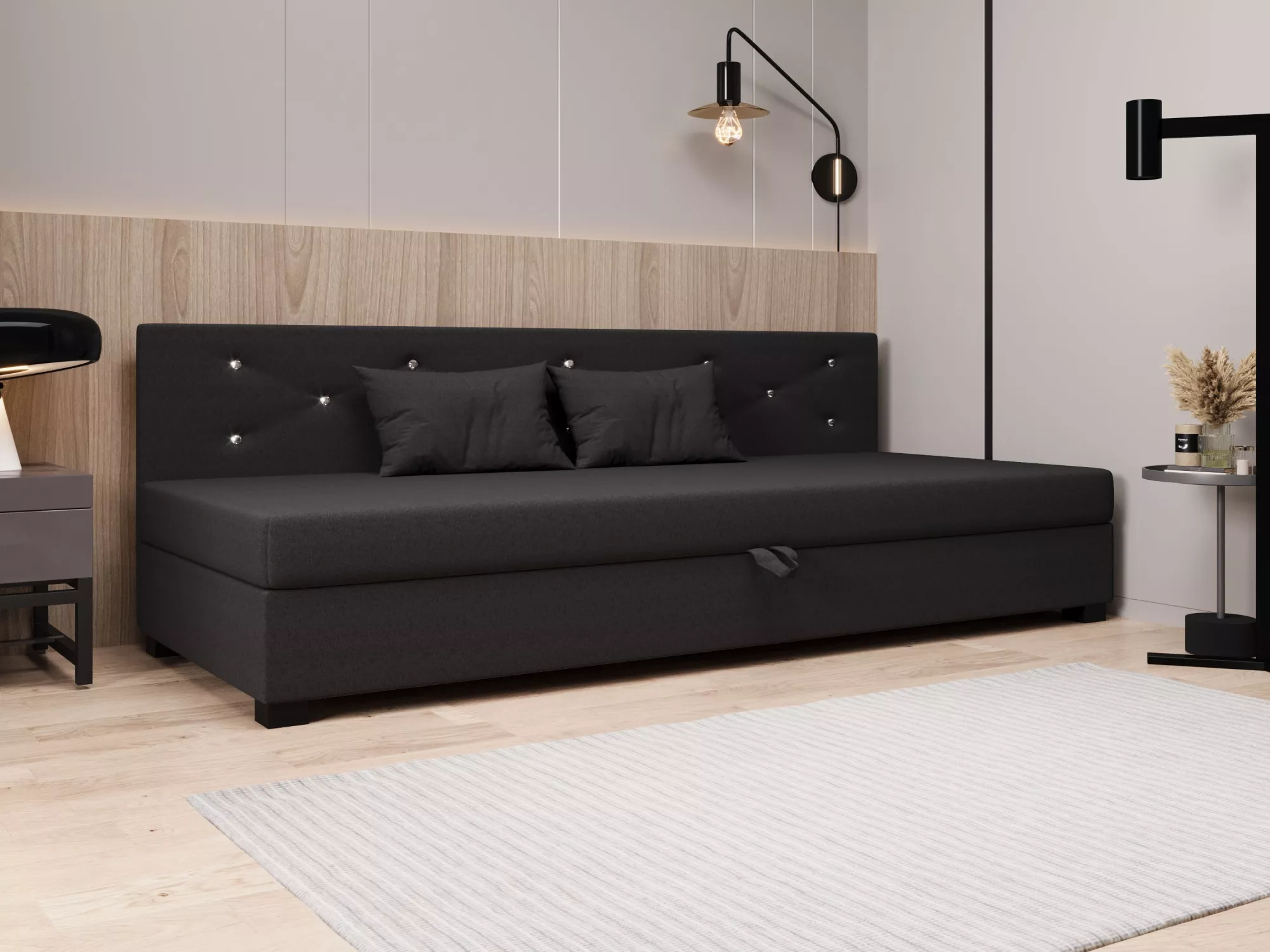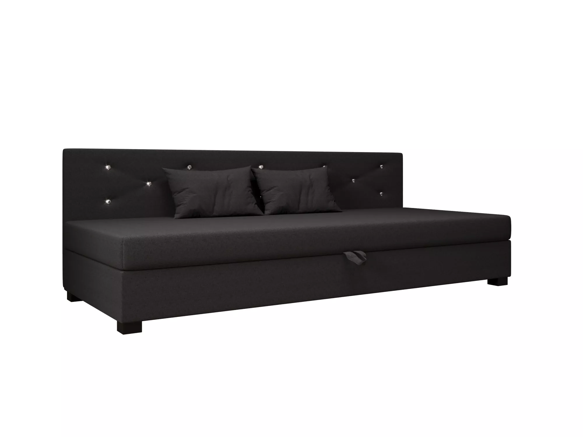 Čalouněná postel 90x195 MILEKA BIZ 1 zaujme především svým prošívaným čelem s ozdobnými knoflíky. Pohodlná matrace poskytne veškerý komfort při odpočinku a relaxaci. Postel disponuje prostorným úložným prostorem, kde můžete schovat lůžkoviny nebo sezónní oblečení.