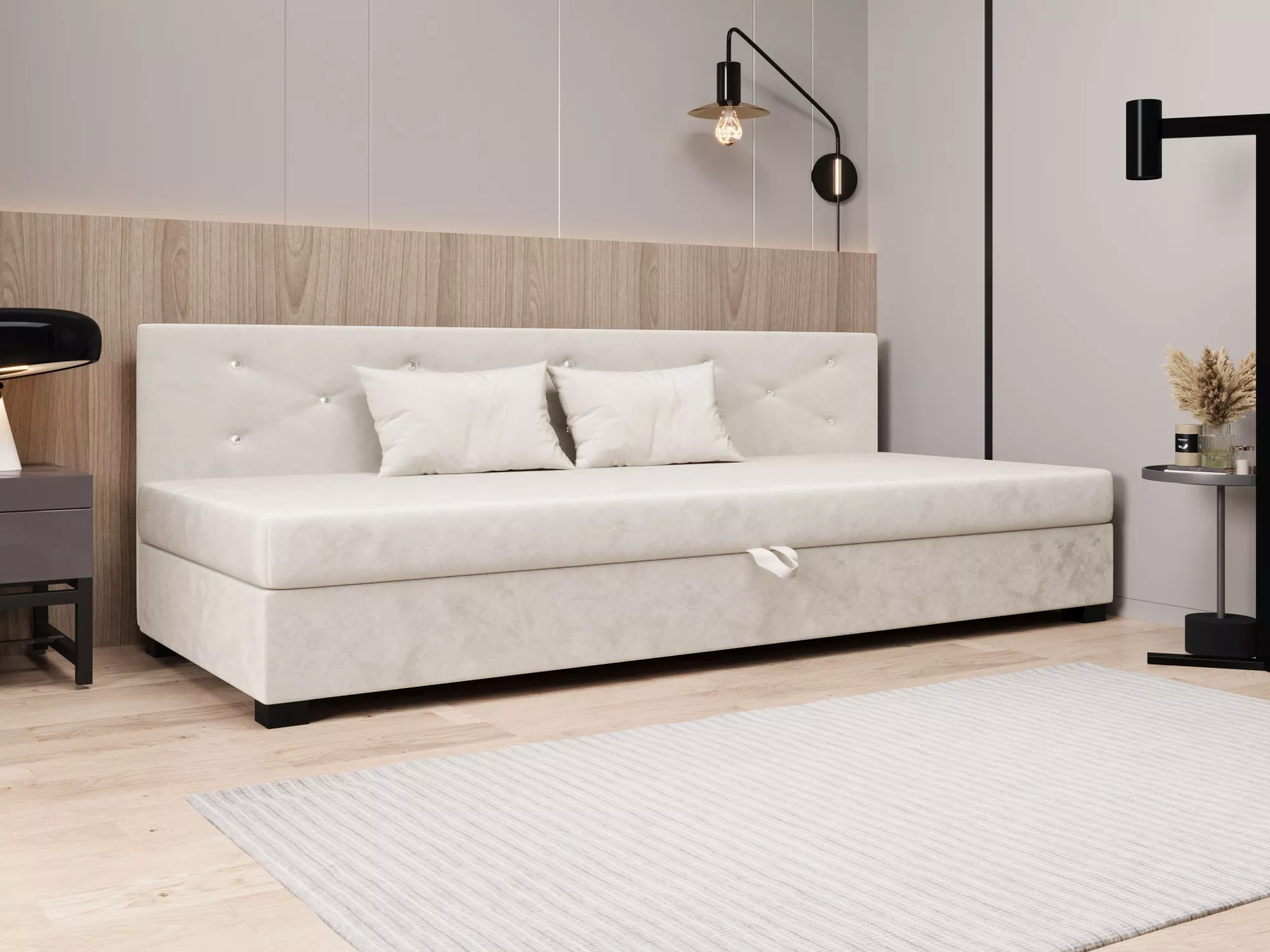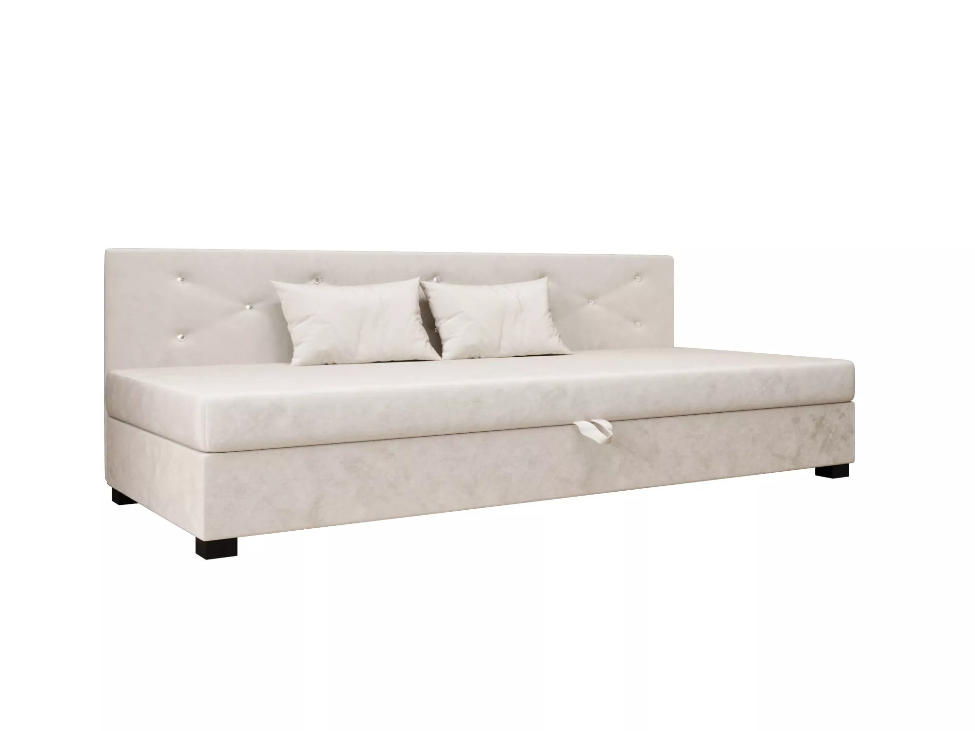 Čalouněná postel 120x195 MILEKA BIZ 1 zaujme především svým prošívaným čelem s ozdobnými knoflíky. Pohodlná matrace poskytne veškerý komfort při odpočinku a relaxaci. Postel disponuje prostorným úložným prostorem, kde můžete schovat lůžkoviny nebo sezónní oblečení.