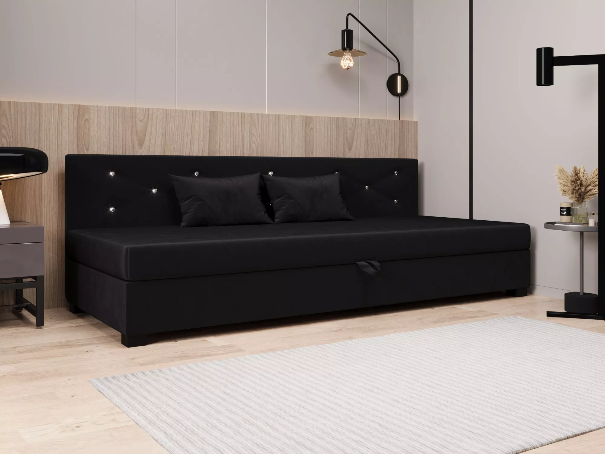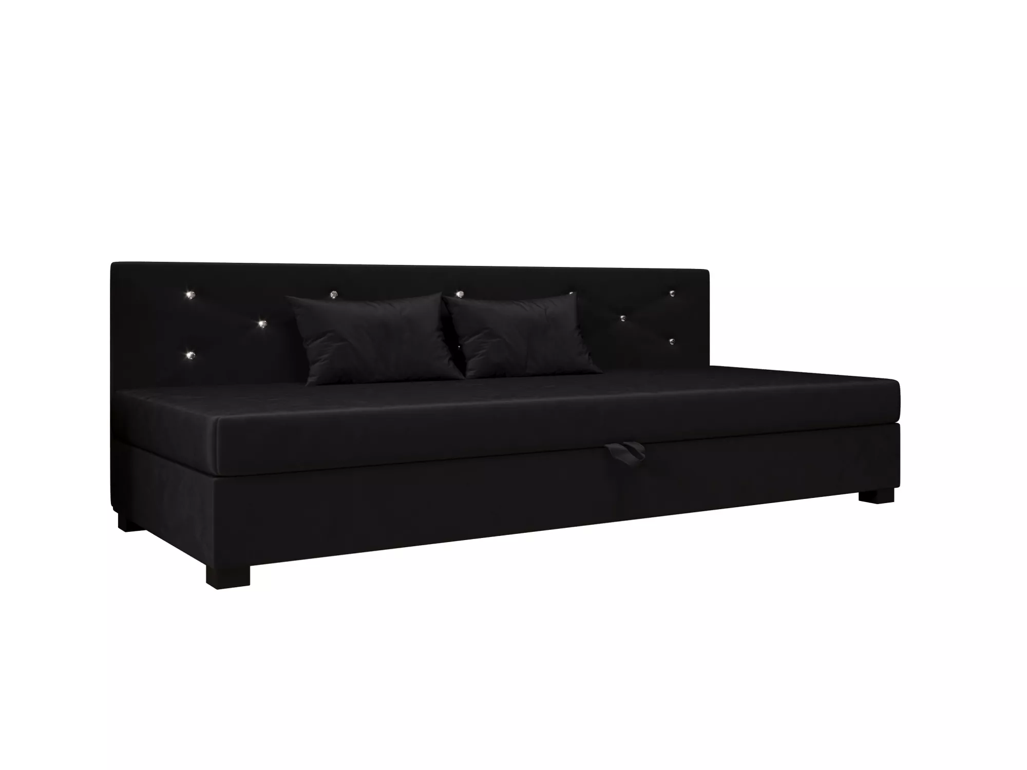 Čalouněná postel 120x195 MILEKA BIZ 1 zaujme především svým prošívaným čelem s ozdobnými knoflíky. Pohodlná matrace poskytne veškerý komfort při odpočinku a relaxaci. Postel disponuje prostorným úložným prostorem, kde můžete schovat lůžkoviny nebo sezónní oblečení.