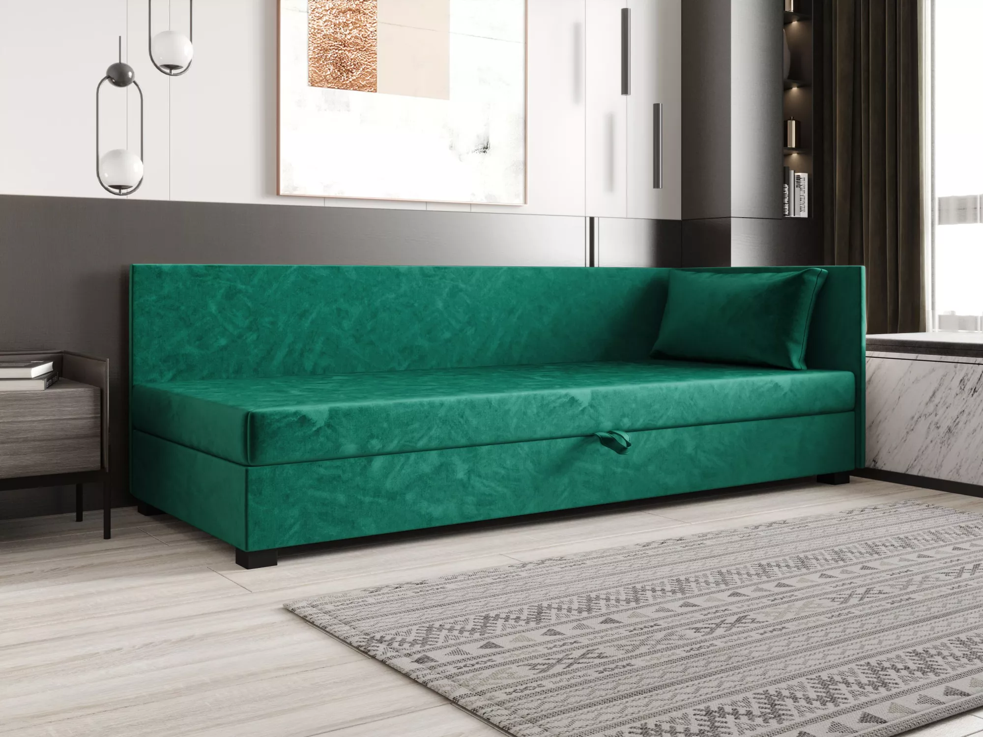 Jednolůžková postel 100x195 ZAJDA PLUS 1 s úložným prostorem - zelená