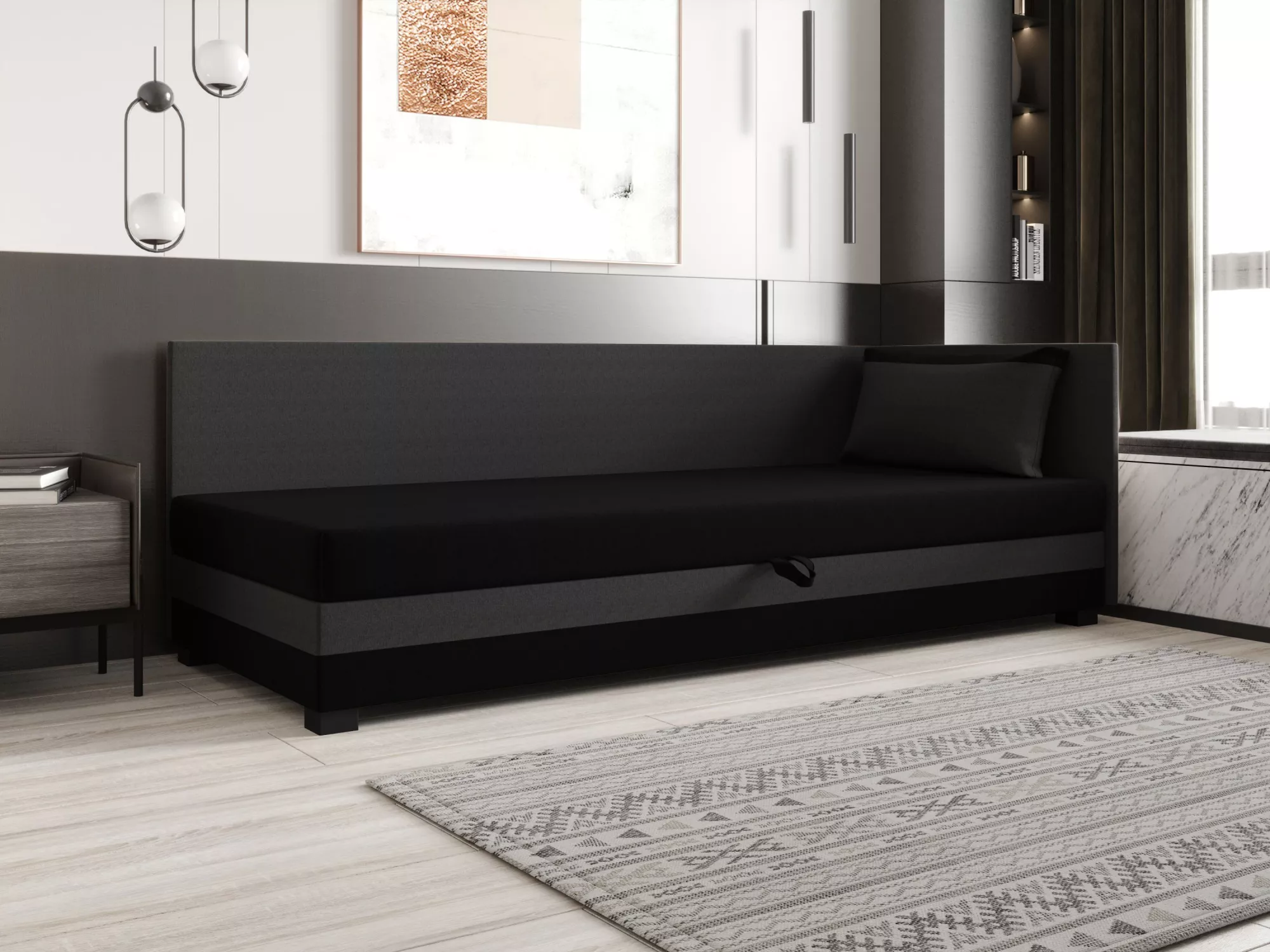Jednolůžková postel 90x195 ZAJDA PLUS 2 s úložným prostorem - černá / šedá