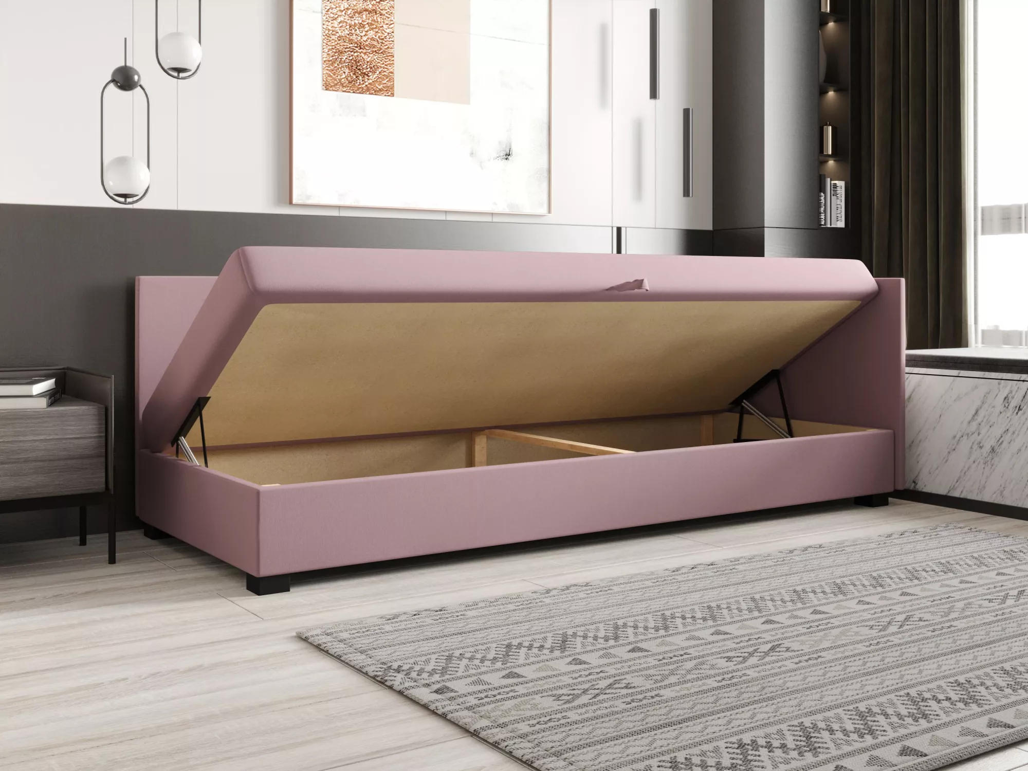 Jednolůžková postel 90x195 ZAJDA PLUS 2 s úložným prostorem svým jednoduchým minimalistickým designem zapadne do každého studentského pokoje. Vysoké čalouněné čelo zabrání poškrábání a zašpinění zdi. Příjemná potahová látka zvýší komfort používání.