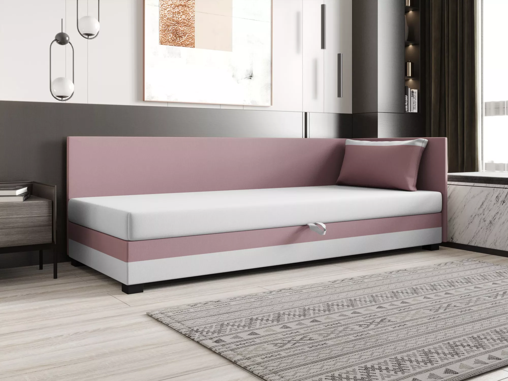 Jednolůžková postel 90x195 ZAJDA PLUS 2 s úložným prostorem - růžová / bílá
