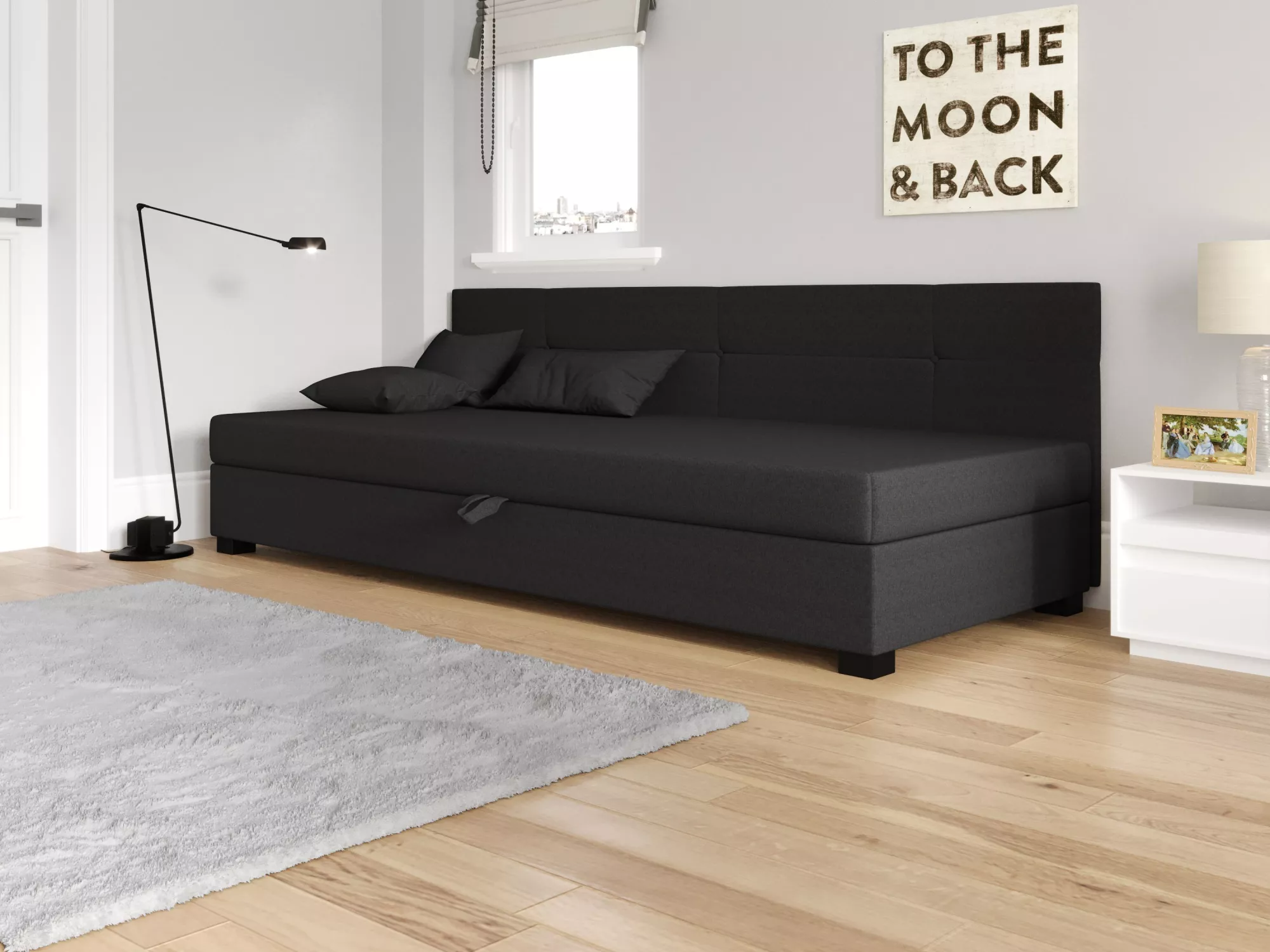 Jednolůžková čalouněná postel 100x195 LOCIKA BIZ 1 vyniká pohodlnou matrací, která zpříjemní každou chvíli odpočinku. Postel disponuje praktickým úložným prostorem pro uložení sezónního oblečení nebo lůžkovin. Příjemná potahová látka zvyšuje komfort používání.
