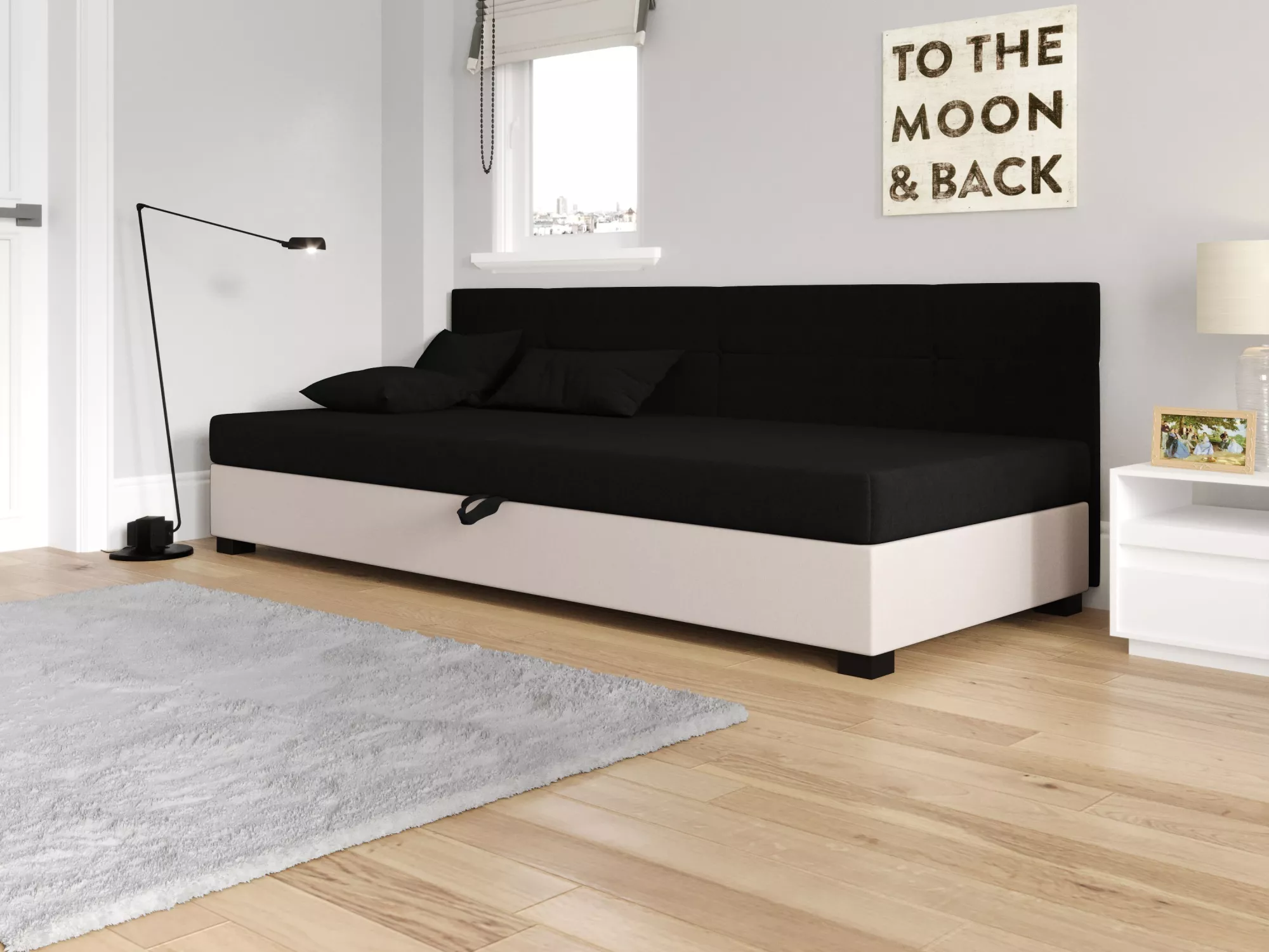 Jednolůžková čalouněná postel 110x195 LOCIKA BIZ 1 - černá / ecru