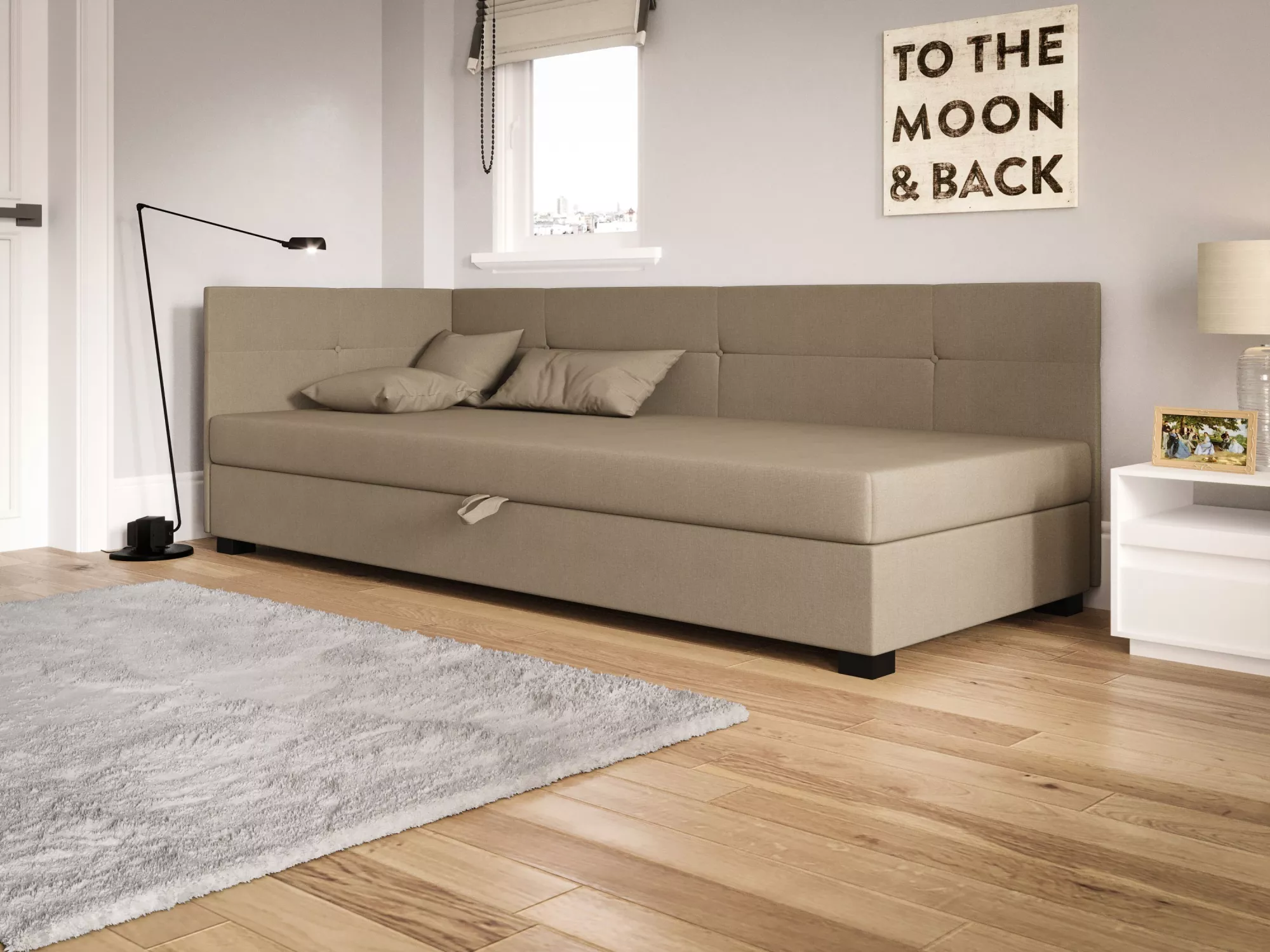 Jednolůžková čalouněná postel 100x195 LOCIKA PLUS 1 vyniká pohodlnou matrací, která zpříjemní každou chvíli odpočinku. Postel disponuje praktickým úložným prostorem pro uložení sezónního oblečení nebo lůžkovin. Příjemná potahová látka zvyšuje komfort používání.