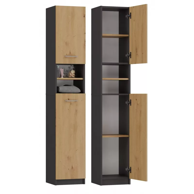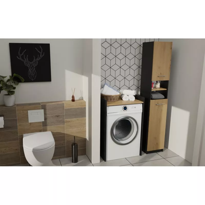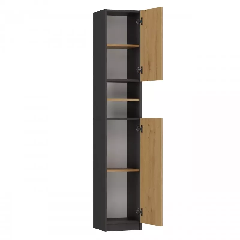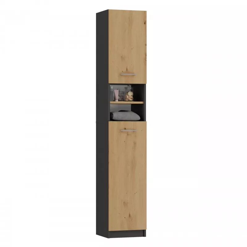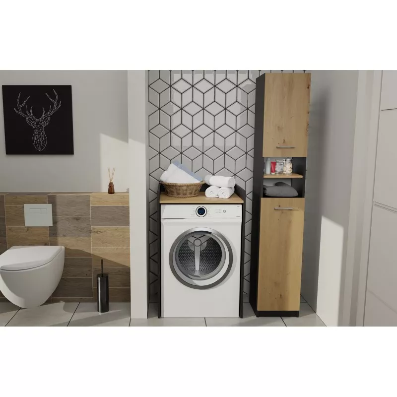 Úzká koupelnová skříňka JANNO - dub artisan / antracitová