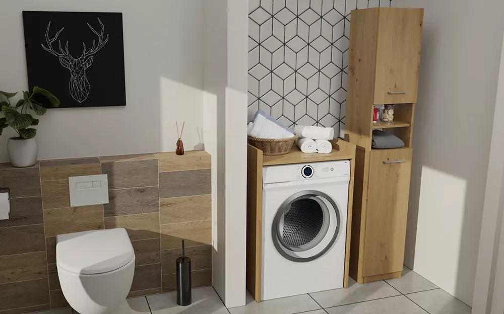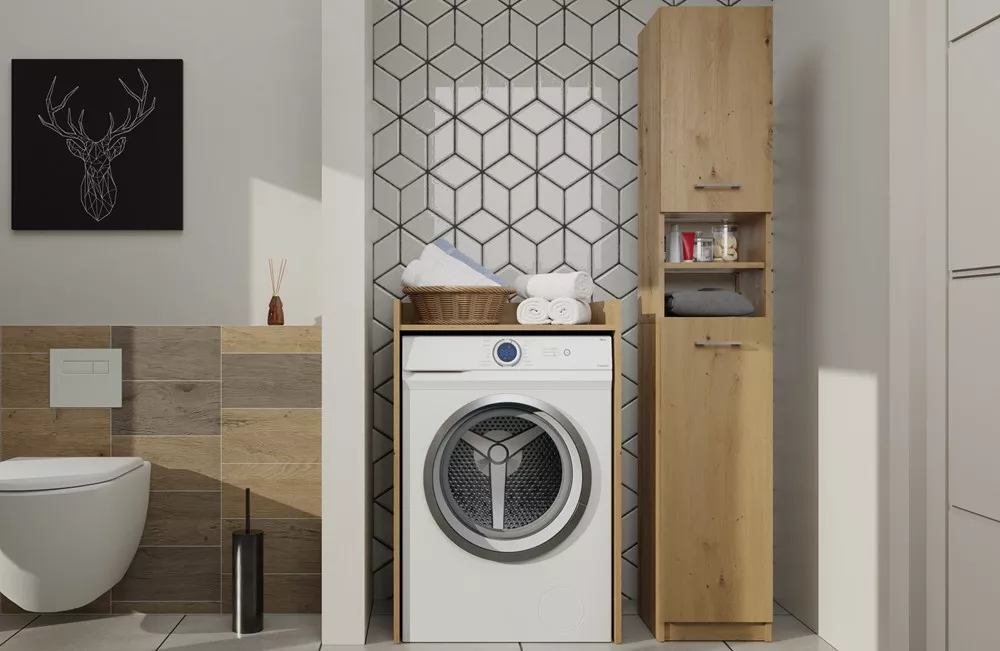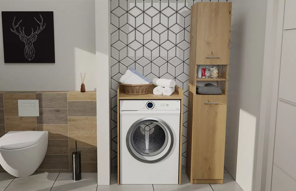 Úzká koupelnová skříňka JANNO - dub artisan