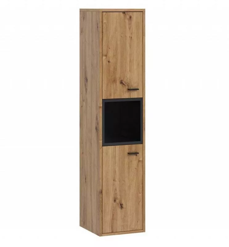 VÝPRODEJ - Vysoká koupelnová skříňka BEND - dub artisan / černá