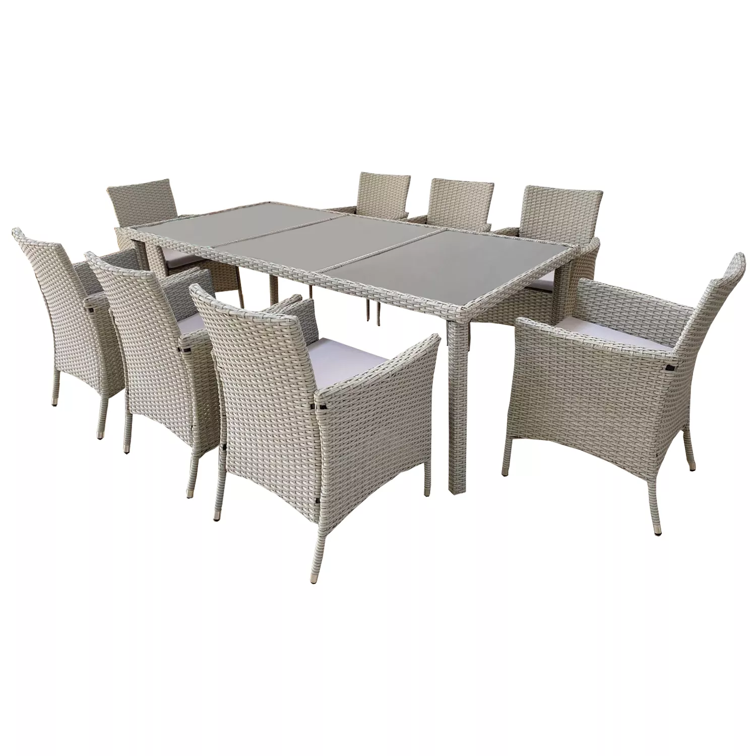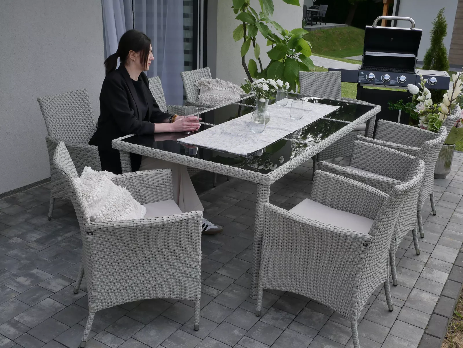 Velká ratanová zahradní sestava CHANEL vám dopřeje maximální pohodlí při vašem odpočinku na zahradě nebo grilování s kamarády. Nábytek je vyrobený z kvalitních materiálů, takže vám bude sloužit mnoho let. Sestava se skládá z 8 židlí a stolu.