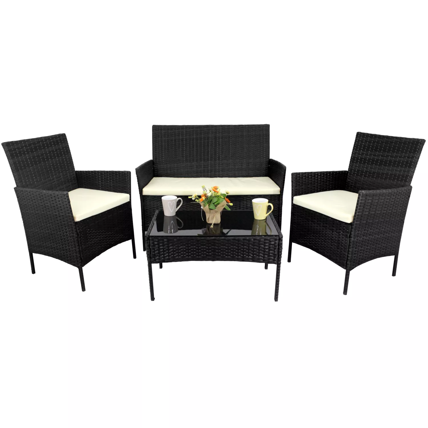 Ratanová zahradní sestava ARIANA - černá / krémová