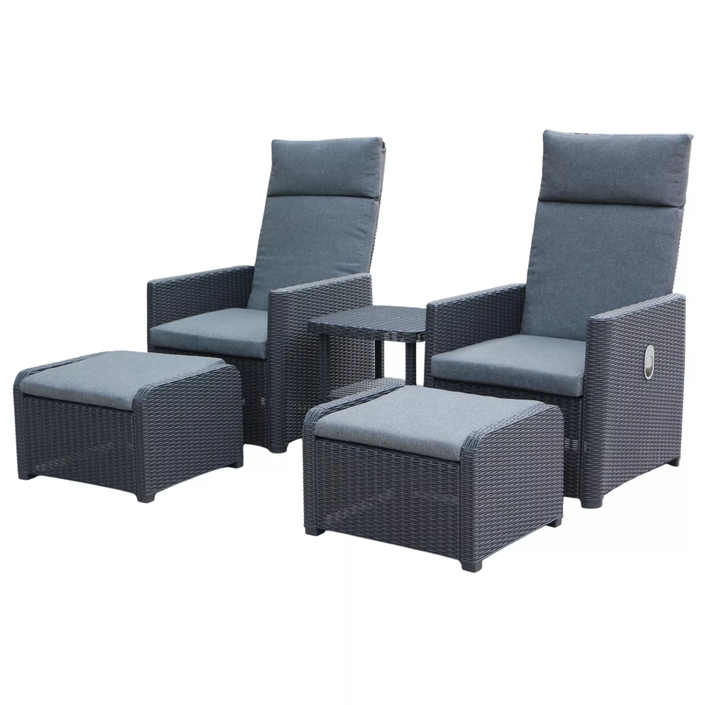 Zahradní sestava ELEANOR se skládá ze 2 rozkládacích křesel, 2 taburetů a stolíku. Sestava vám poskytne pohodlí při odpočinku a relaxaci. Je vyrobená z materiálů odolných proti UV záření, takže zůstane pěkná po mnoho let.