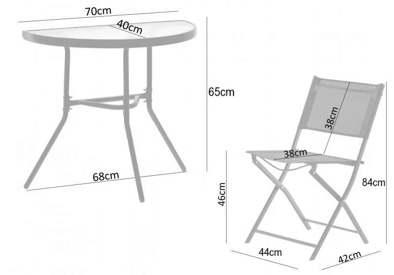 Malý zahradní set ARIANA bude díky svým rozměrům dokonalou volbou pro menší místo na zahradě nebo na balkóně. Set se skládá ze 2 skládacích židlí a stolu.