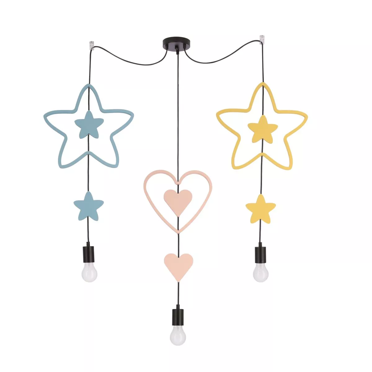 Dětské závěsné svítidlo MIRIDAM 6 - 3xE27, 20W, žluté / růžové / modré
