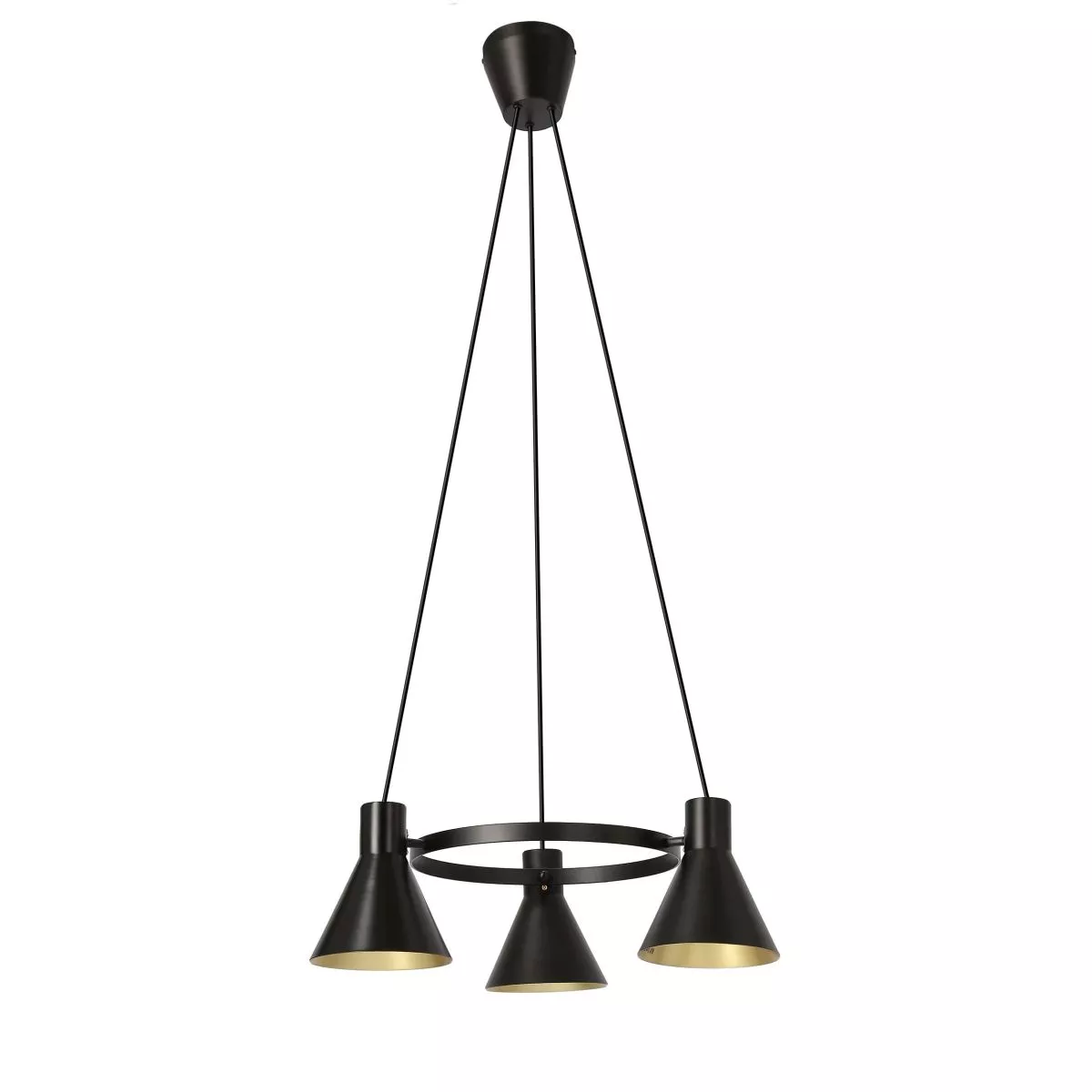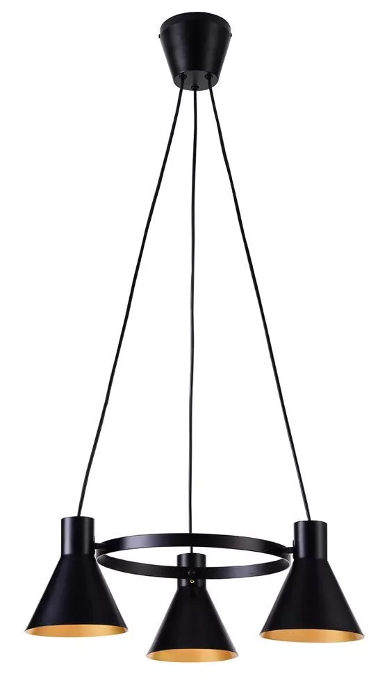 Moderní závěsný tříramenný lustr na lanku MORE - 3xE27, 40W, černý / zlatý