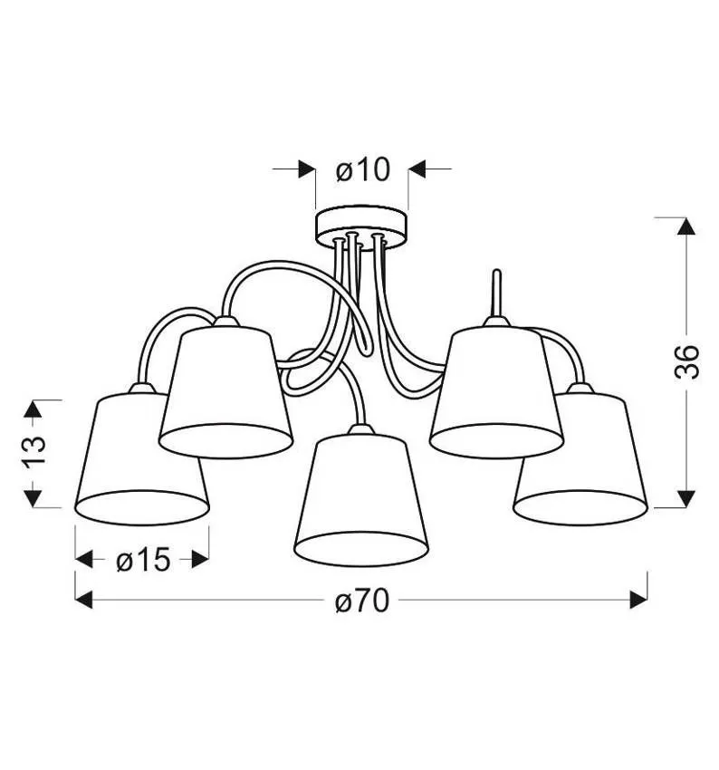 Dodejte svému interiéru moderní eleganci se závěsným svítidlem LUK. Kovová konstrukce s elegantními stříbrnými textilními stínidly vytváří vizuálně zajímavý celek, který dodá prostoru lehkost a noblesu. Skvěle se hodí do obývacího pokoje, ložnice nebo vstupní haly. Určeno pro 5 žárovek s paticí E14 a maximálním výkonem 40 W. Pro úsporu el. energie doporučujeme osadit úspornou LED žárovkou. Krytí IP20 značí vhodnost použití v interiéru.