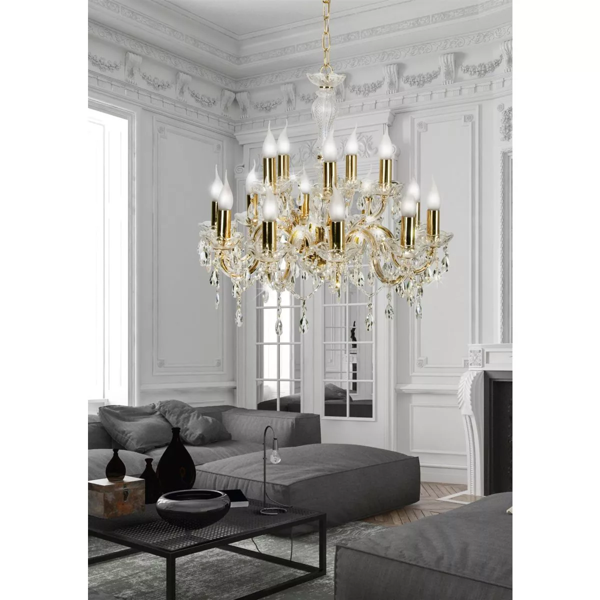 Závěsný honosný lustr na řetězu MARIA TERESA - 15xE14, 40W, zlatý