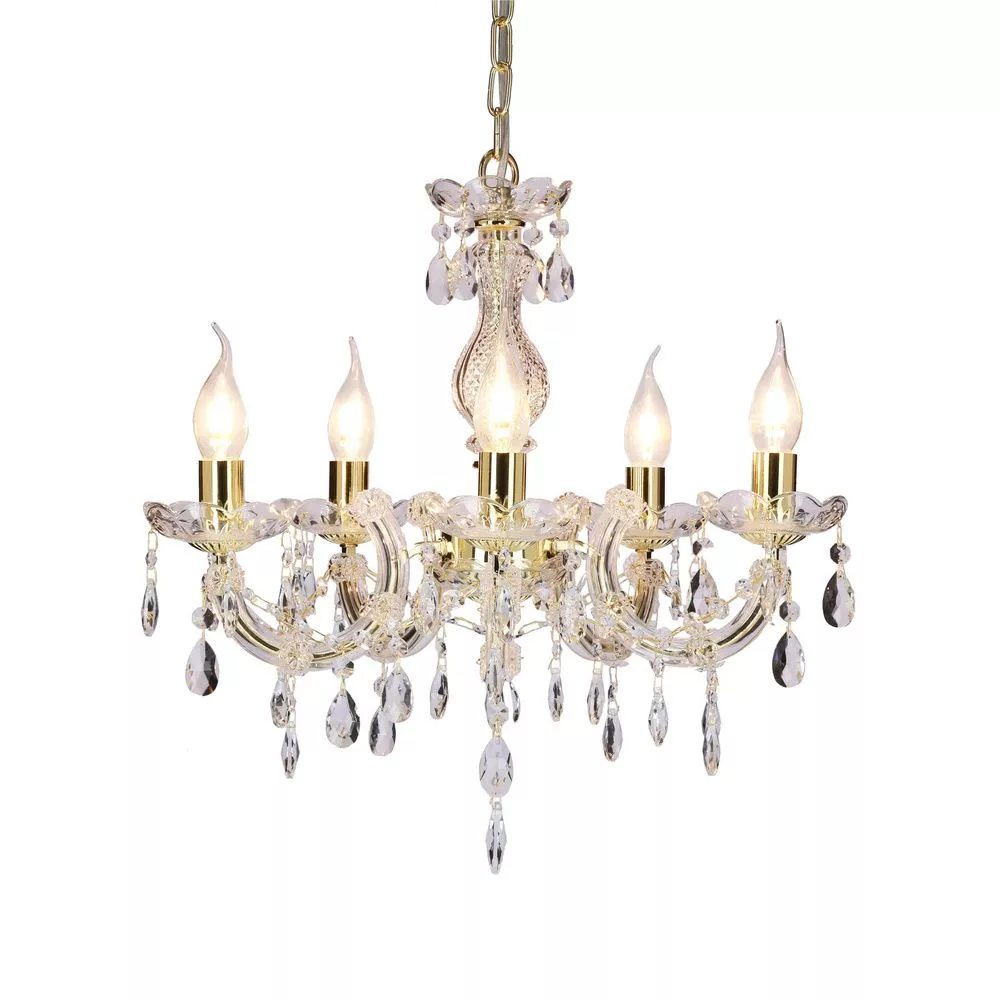 Závěsný pětiramenný lustr na řetězu MARIA TERESA - 5xE14, 40W, zlatý