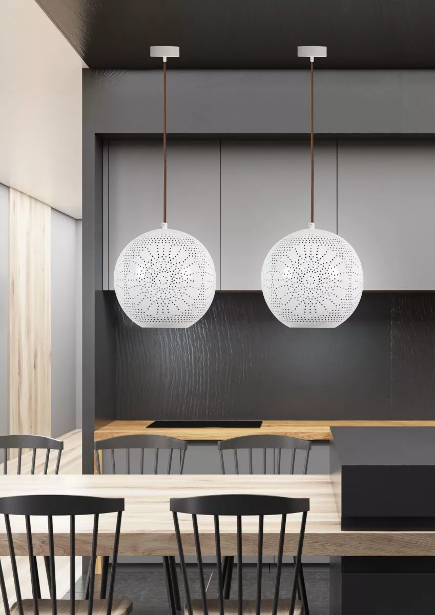 Proměňte svůj domov se závěsným svítidlem BENE! Jemně dírkované stínidlo zosobňuje promyšlený design, který nechává světelný tok volně proudit a vytváří fascinující hru světla a stínu. Skvěle se hodí do obývacího pokoje, ložnice i chodby, kde dodá každému koutku elegantní světelný akcent. Určeno pro žárovku s paticí E27 a maximálním výkonem 60 W. Pro úsporu el. energie doporučujeme osadit úspornou LED žárovkou. Krytí IP20 značí vhodnost použití v interiéru.