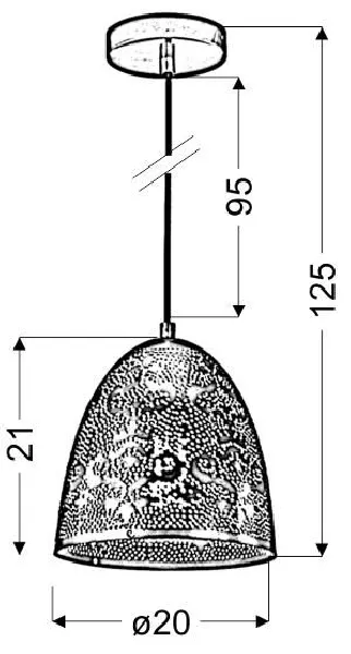 Proměňte svůj interiér s závěsným osvětlením SFINKS! Kovová konstrukce s drobnými otvory vytváří rozptýlené světelné efekty, které jemně osvětlují prostor a dodávají prostoru orientální nádech. Skvěle se hodí nad jídelní stůl, do obývacího pokoje nebo do moderního loftového prostoru, kde umocní atmosféru. Určeno pro žárovku s paticí E27 a maximálním výkonem 60 W. Pro úsporu el. energie doporučujeme osadit úspornou LED žárovkou. Krytí IP20 značí vhodnost použití v interiéru.
