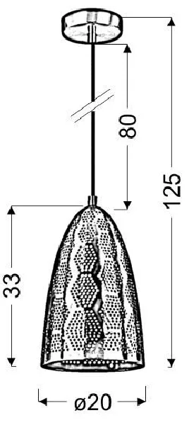 Proměňte svůj interiér s závěsným svítidlem SFINKS! Kovová konstrukce s drobnými otvory vytváří rozptýlené světelné efekty, které jemně osvětlují prostor a dodávají prostoru orientální nádech. Skvěle se hodí nad jídelní stůl, do obývacího pokoje nebo do moderního loftového prostoru, kde umocní atmosféru. Určeno pro žárovku s paticí E27 a maximálním výkonem 60 W. Pro úsporu el. energie doporučujeme osadit úspornou LED žárovkou. Krytí IP20 značí vhodnost použití v interiéru.