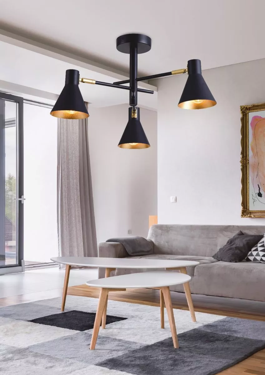 Tříramenný lustr v loftovém stylu LESS - 3xE14, 40W, černý / zlatý