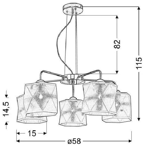 Zvýrazněte svůj interiér se závěsným lustrem NOSJA! Kovová konstrukce zavěšená na lanku vytváří lehký a vzdušný dojem, zatímco plastová stínidla propouštějí světlo a dávají prostoru jemný lesk. Vhodné například do chodby nebo nad jídelní kout, kde dodá moderní eleganci. Určeno pro 5 žárovek s paticí E27 a maximálním výkonem 40 W. Pro úsporu el. energie doporučujeme osadit úspornou LED žárovkou. Krytí IP20 značí vhodnost použití v interiéru.