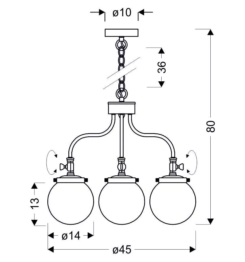 Závěsný tříramenný lustr na řetězu BALLET působí noblesně díky kovové konstrukci v barvě ušlechtilé patiny a kulatým skleněným stínidlům, která vytvářejí jemnou hru světla a odlesků. Skvěle doplní jídelní stůl nebo obývací pokoj, kde dodá prostoru eleganci. Disponuje 3 paticemi E27 pro žárovky s maximálním příkonem 40 W. Pro úsporu elektrické energie doporučujeme osadit úspornou LED žárovkou. Krytí IP20 značí vhodnost použití v interiéru.