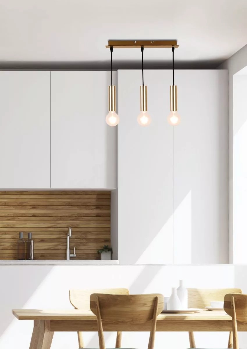Závěsné moderní osvětlení DALLAS 3 zaujme jednoduchým válcovým tvarem v elegantní zlaté barvě, která dodá interiéru jemný dotek luxusu. Skvěle se hodí nad kuchyňskou linku, barový pult nebo nad jídelní stůl, kde vytvoří stylové a funkční osvětlení. Disponuje paticí E27 pro žárovku s maximálním příkonem 40 W. Pro úsporu elektrické energie doporučujeme osadit úspornou LED žárovkou. Krytí IP20 značí vhodnost použití v interiéru.