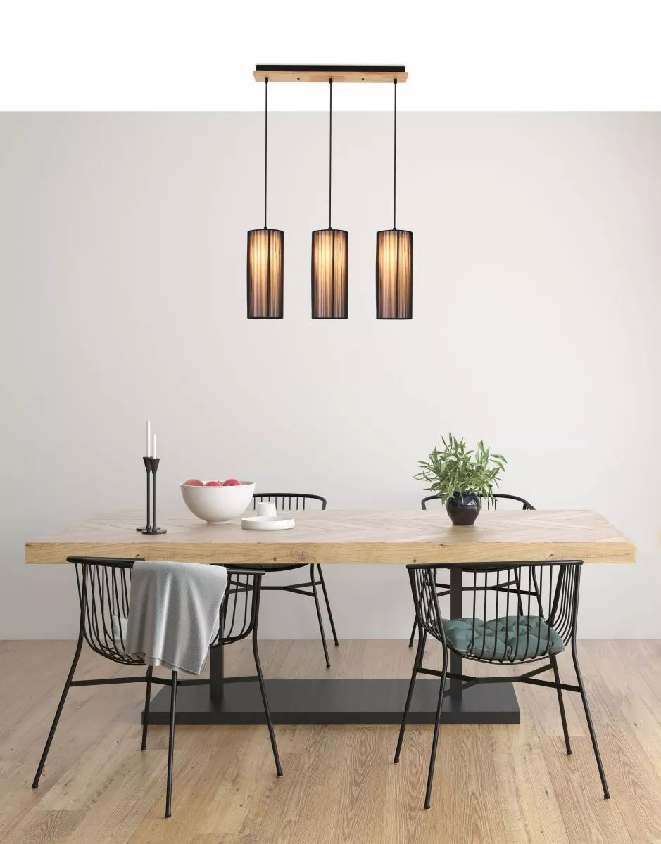 Závěsné osvětlení nad jídelní stůl KIOTO - 3xE27, 40W, černé