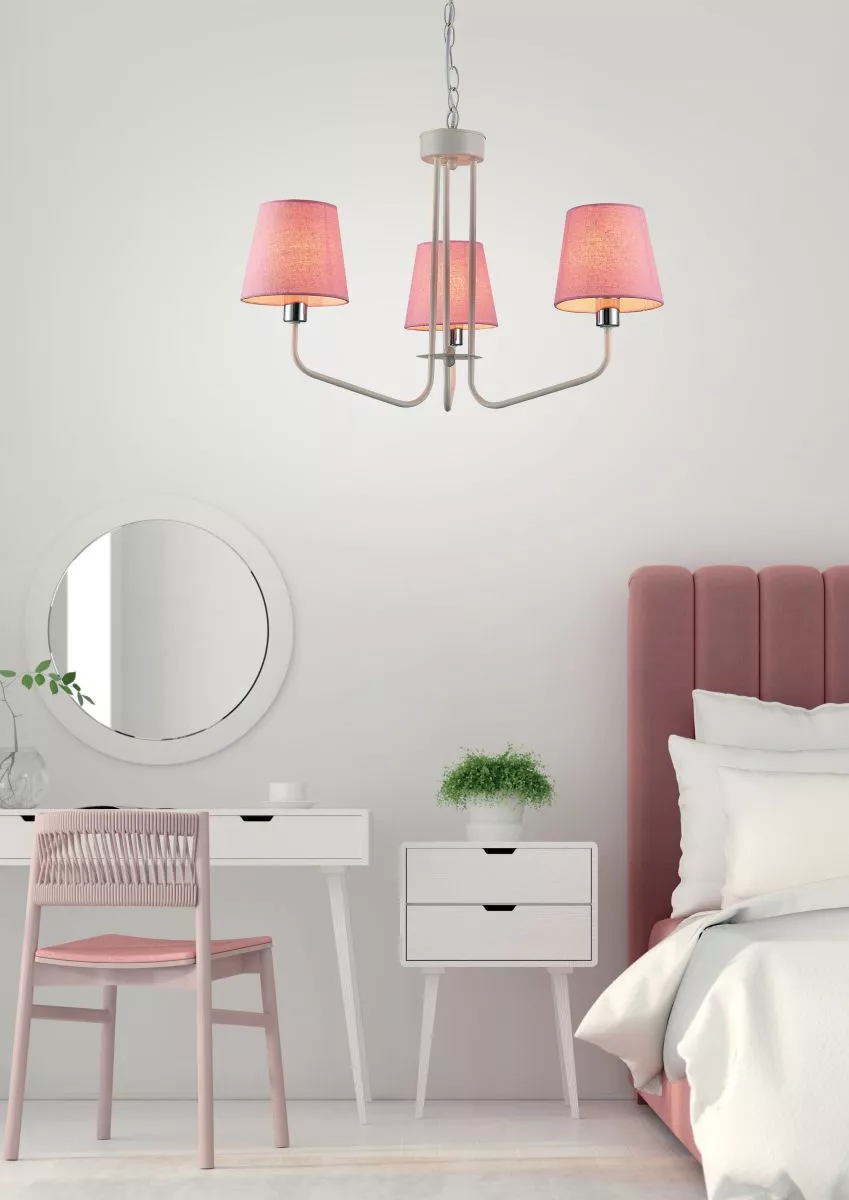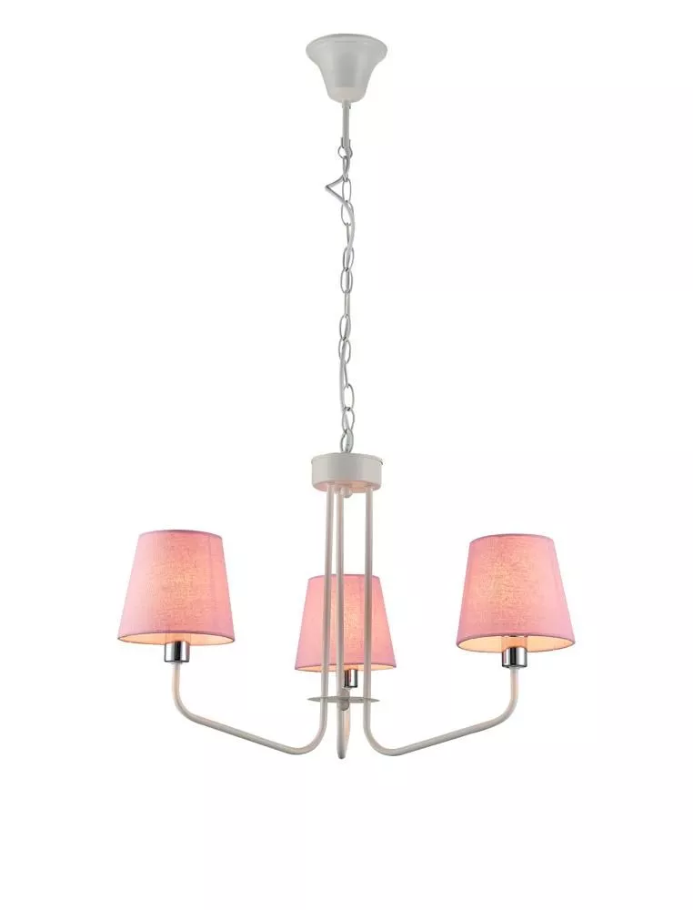 Závěsný tříiramenný lustr na řetězu LUMINOR - 3xE14, 60W, bílý / růžový